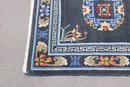 The rug showcases traditional craftsmanship with hand-knotted construction and detailed pattern work throughout. Its bold contrast and classic design make it a standout accent piece suitable for a variety of interiors, including entryways, hallways, or layered rug displays.