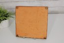 The tile displays a crackle glaze within the central design, adding texture and depth, while the raised detailing enhances the handcrafted look. Suitable for wall display, backsplash accent, or decorative use.