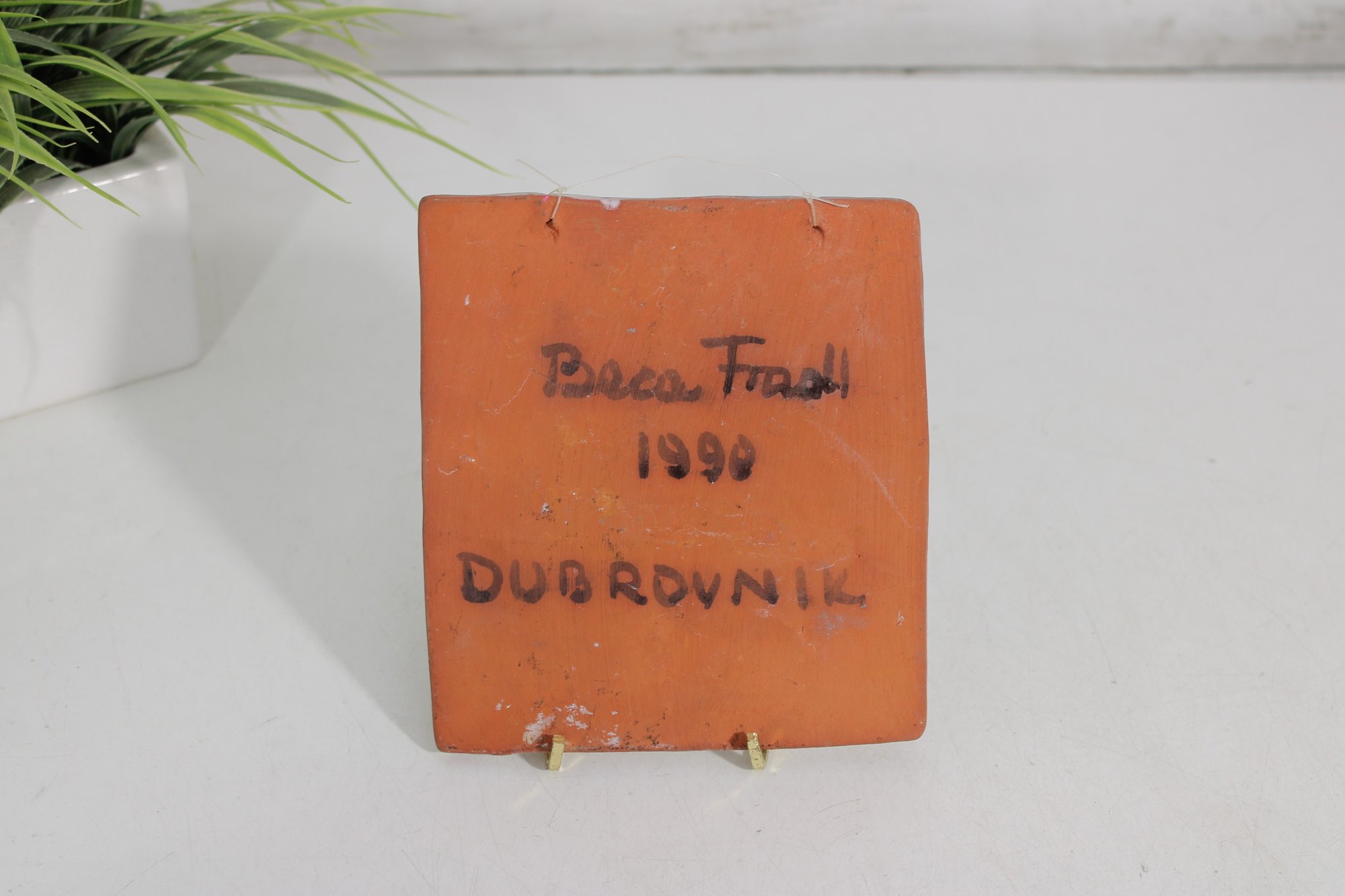 Signed on the back “Dubrovnik 1996” (appears to read Panco Tomic or similar), indicating it is a souvenir or artisan-made piece. The front also features inscribed lettering referencing the location.