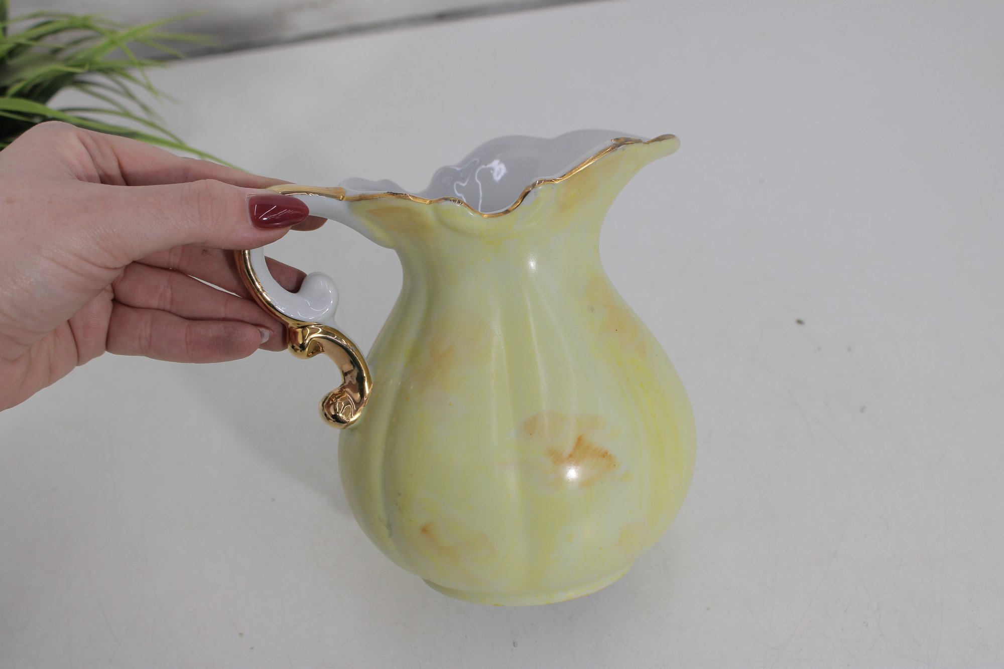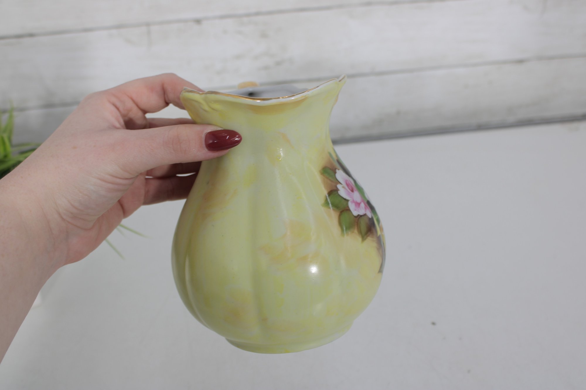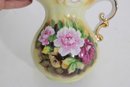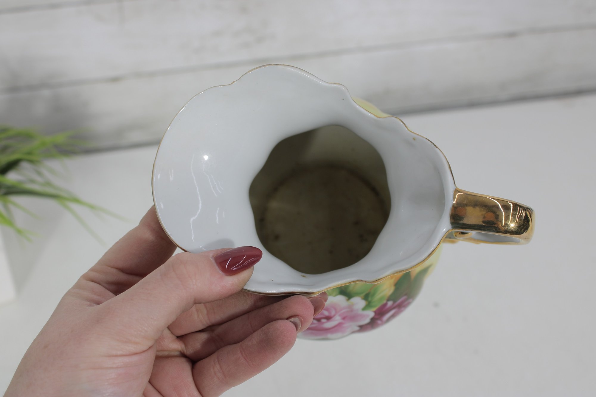 The floral artwork is vibrant and detailed, giving this pitcher a classic Victorian or cottage-style appeal. Perfect as a decorative accent, small water pitcher, or vase for fresh flowers.