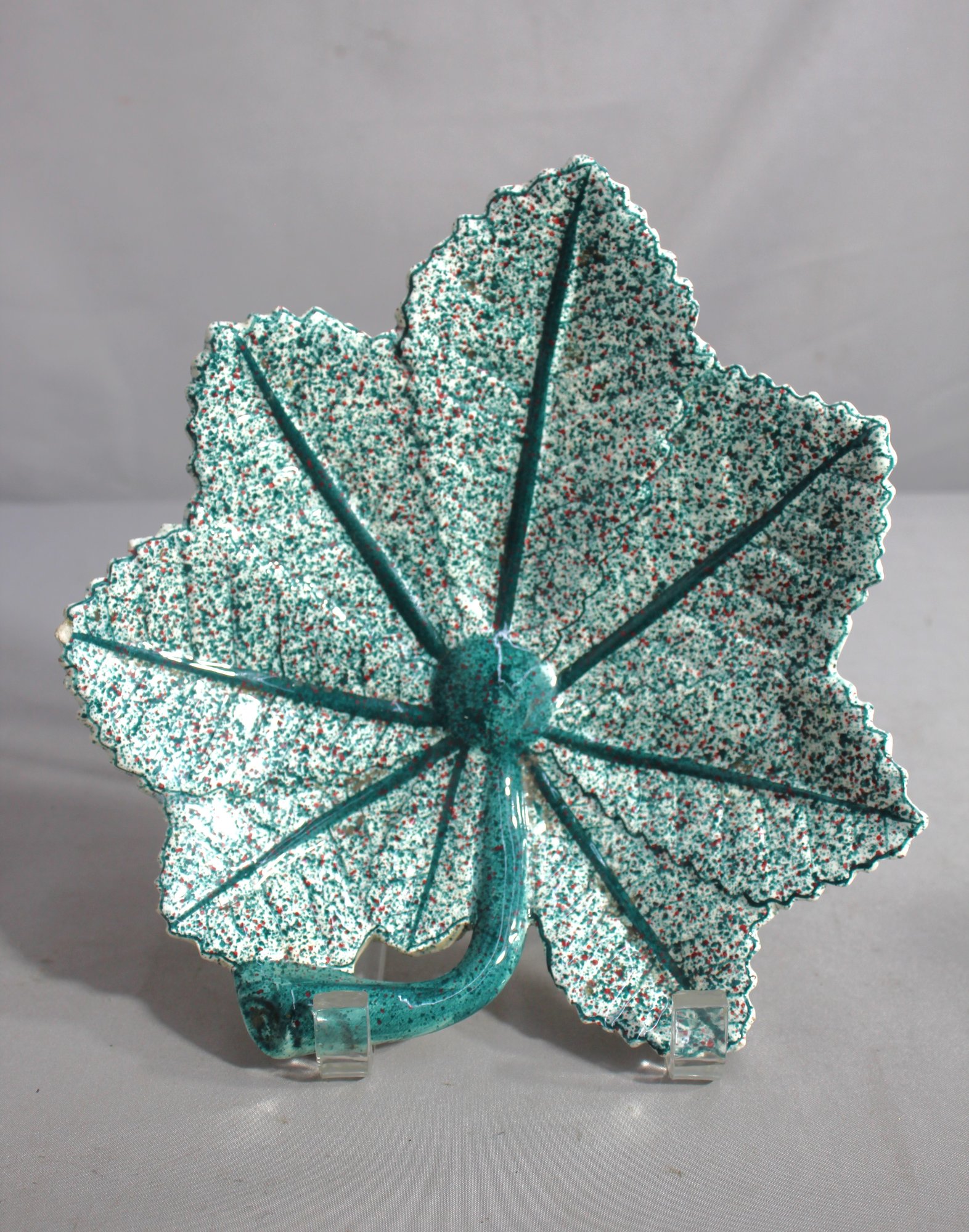 Crafted in Italy, this beautiful plate features intricate hand-painted details in white and green, depicting a realistic leaf design. Perfect for serving cookies, desserts, or appetizers, this plate is both functional and decorative. Its unique design and vintage appeal make it a wonderful addition