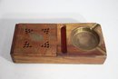vintage handcrafted wooden ashtray and storage box is a beautifully designed smoking accessory featuring brass inlay details and an elephant motif on the hinged lid. Crafted from richly grained wood, this piece combines function with artistic craftsmanship, making it a perfect collectible or decorative item.