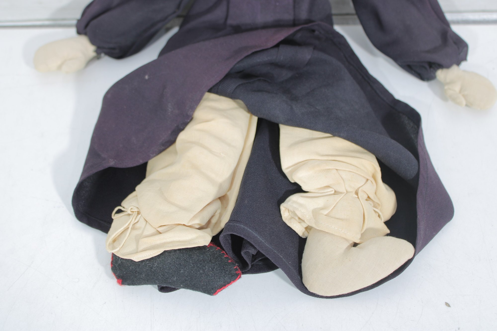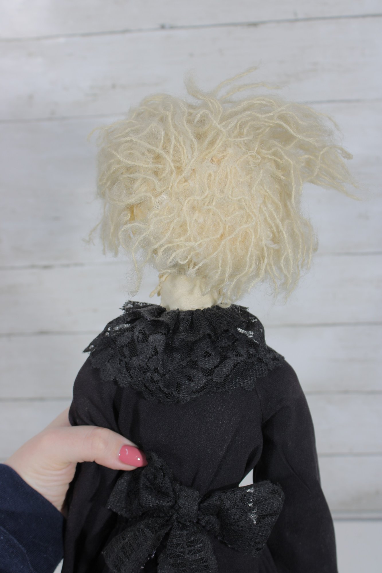 Standing approximately 24 inches tall, this doll has the look of traditional primitive or folk art dolls often used as decorative pieces in country or rustic interiors. The handmade construction and simple materials give it a unique personality and display appeal.