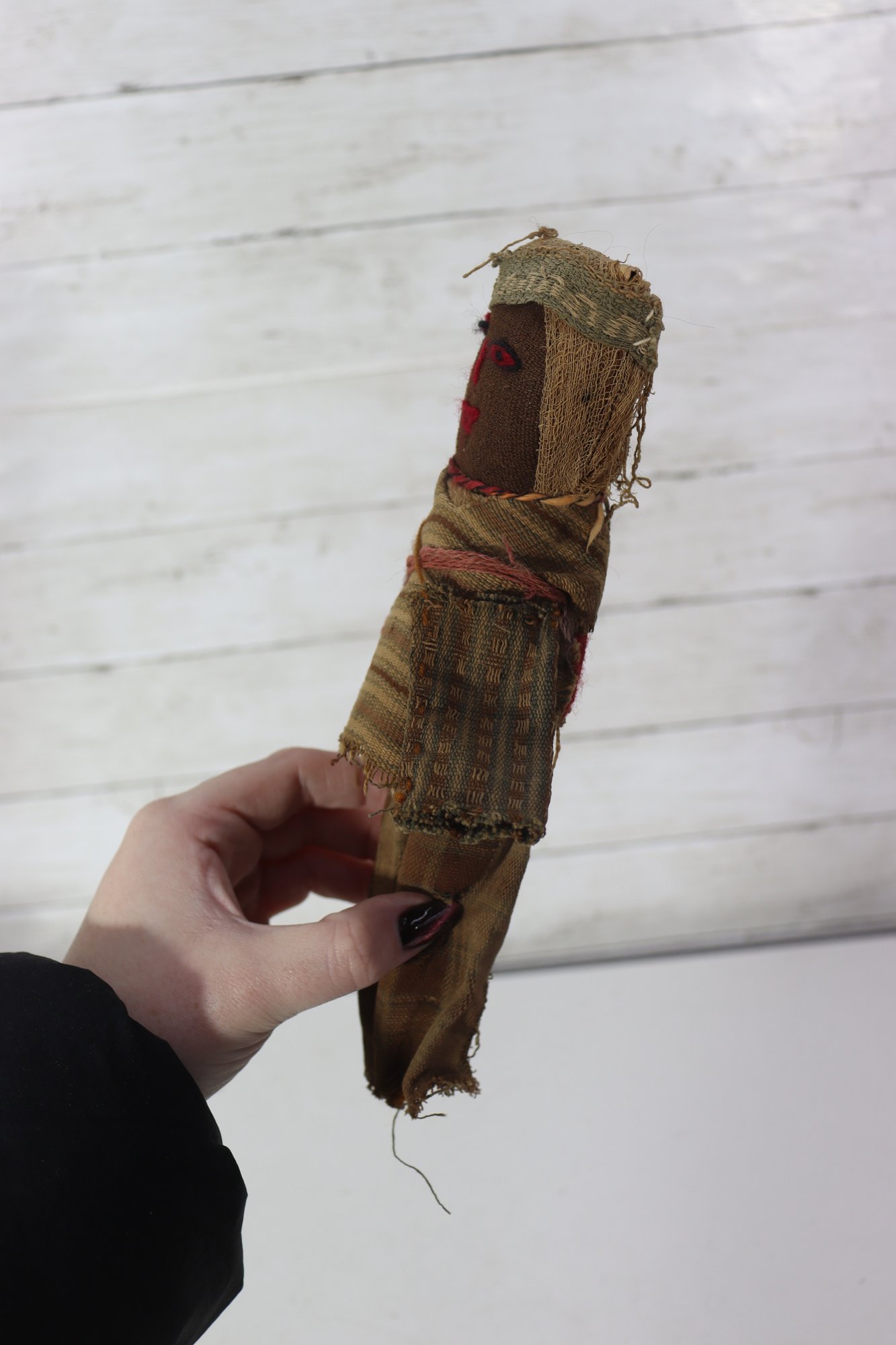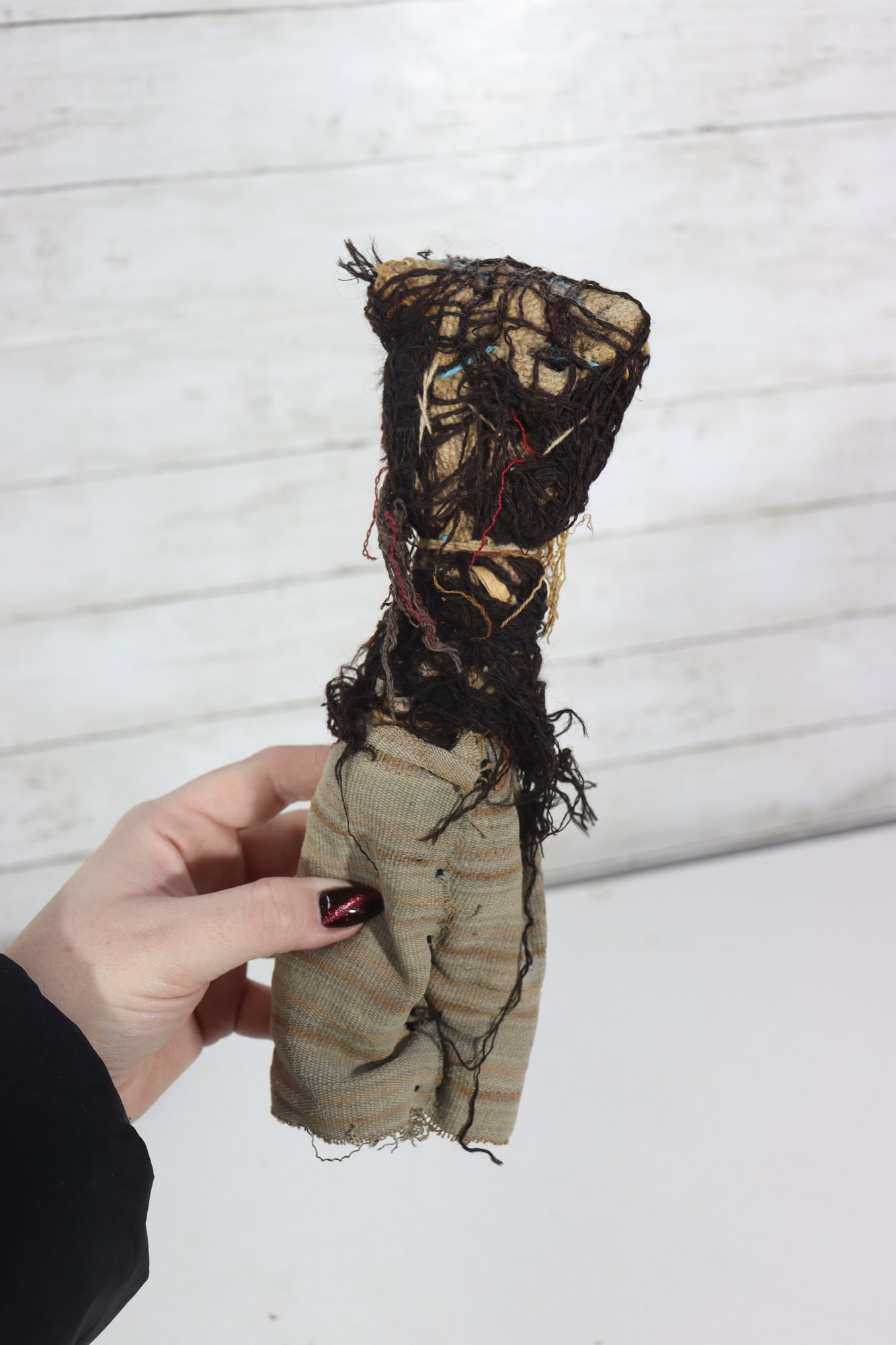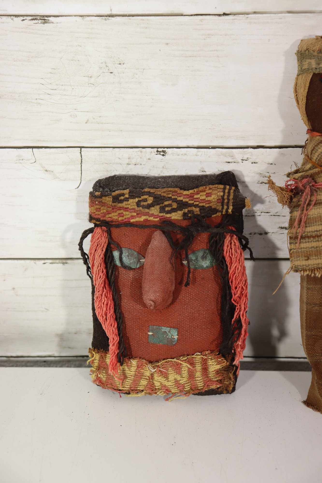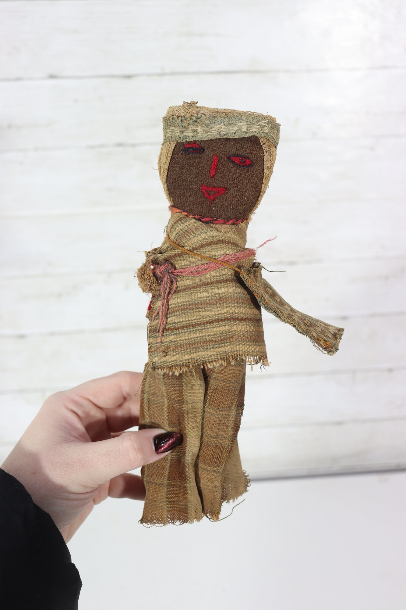 These figures appear to be artisan-made, possibly representing traditional or cultural folk dolls. Their imperfect stitching, hand-dyed fabrics, and aged textiles add to their authentic handmade appeal. A wonderful addition for collectors of folk art, primitive décor, or textile art.