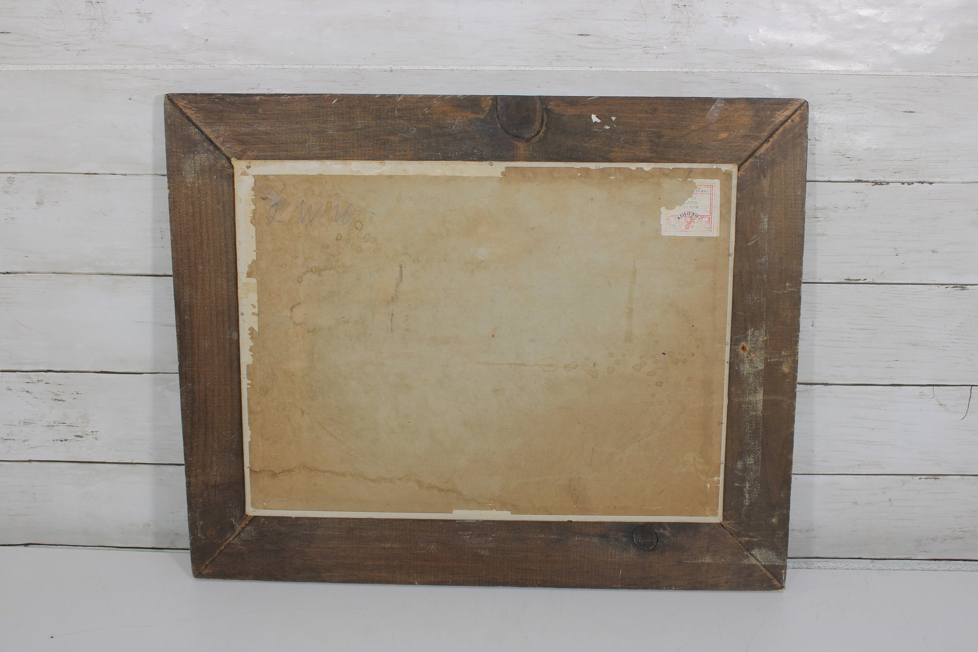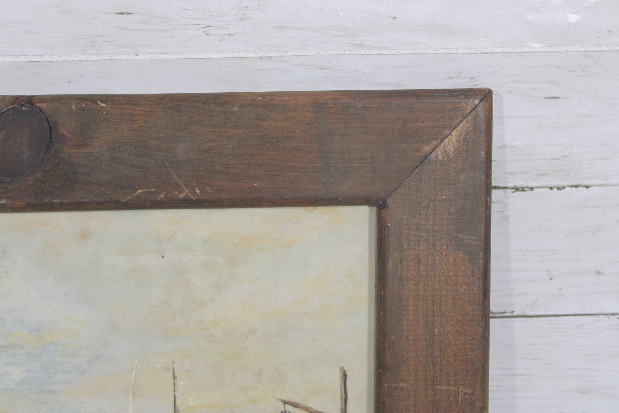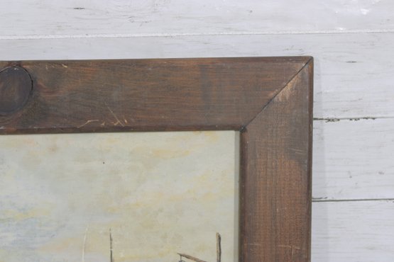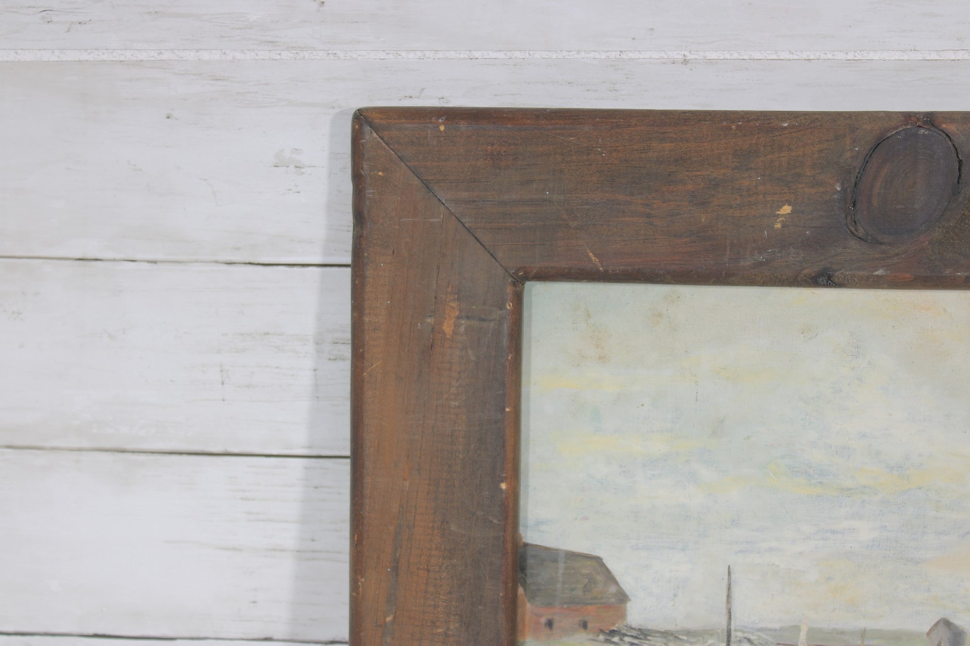 The artwork is unsigned and housed in a rustic wooden frame that complements the coastal subject matter.