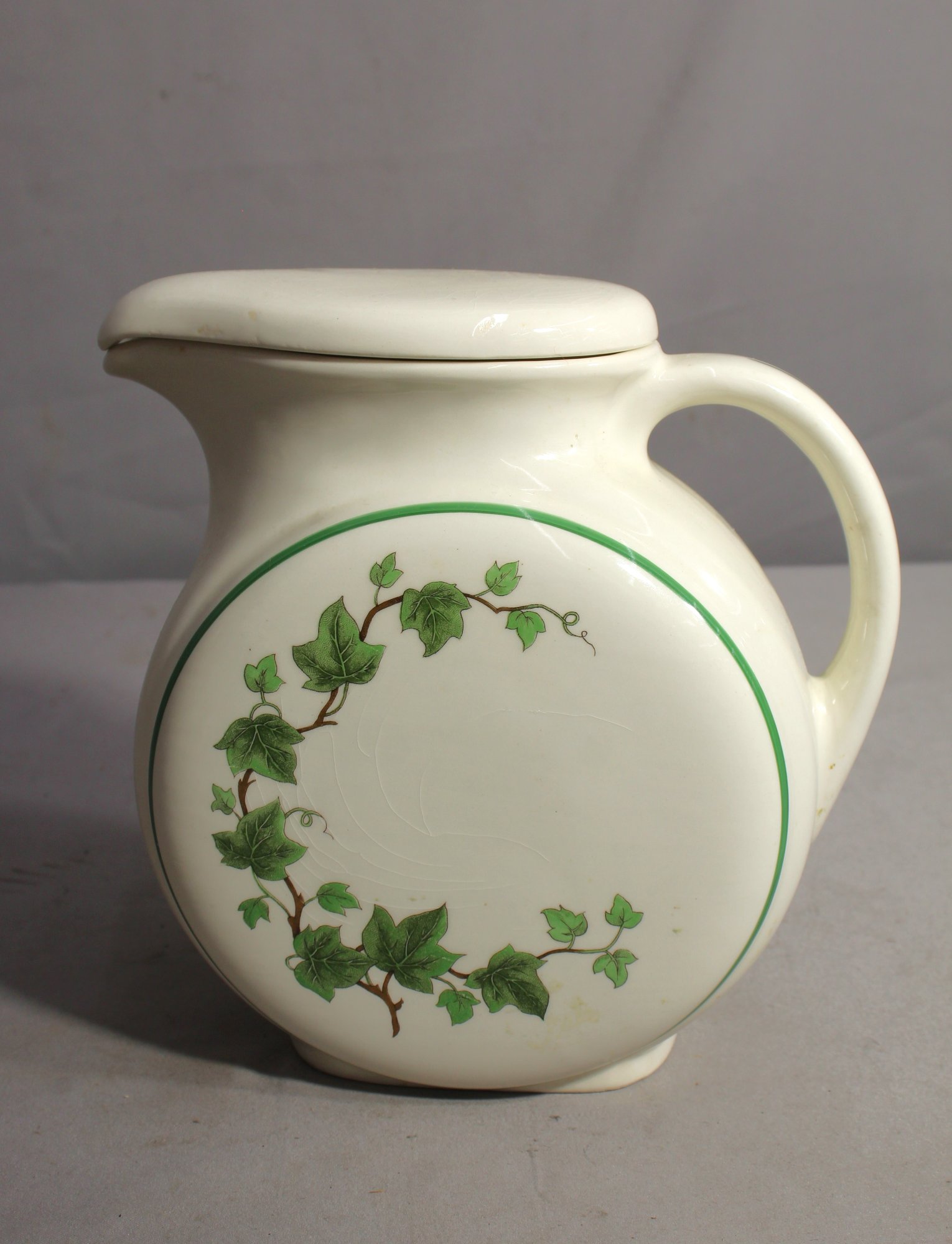 Vintage Harkerware Hotoven Ceramic Water Pitcher - English Ivy Design