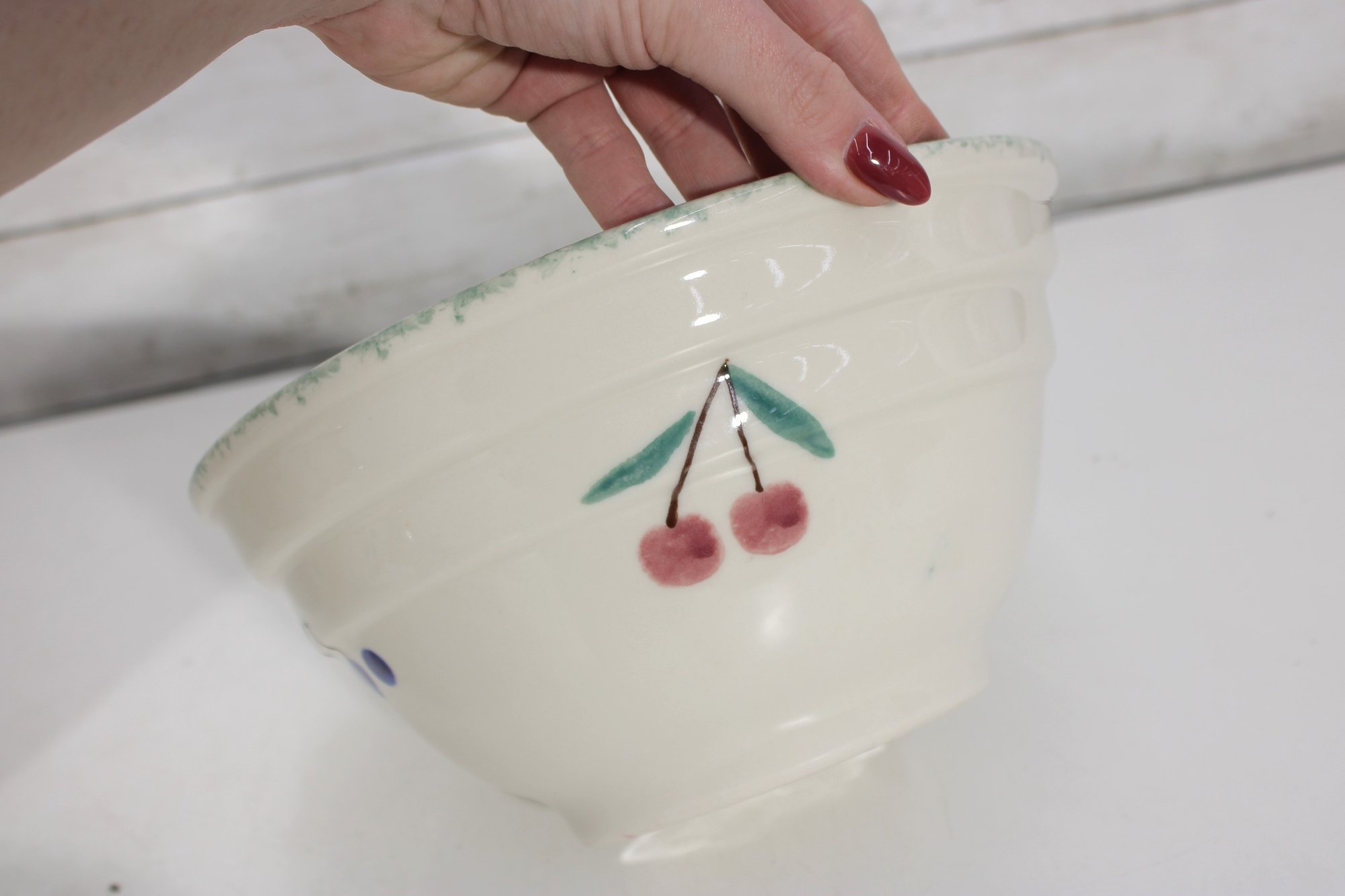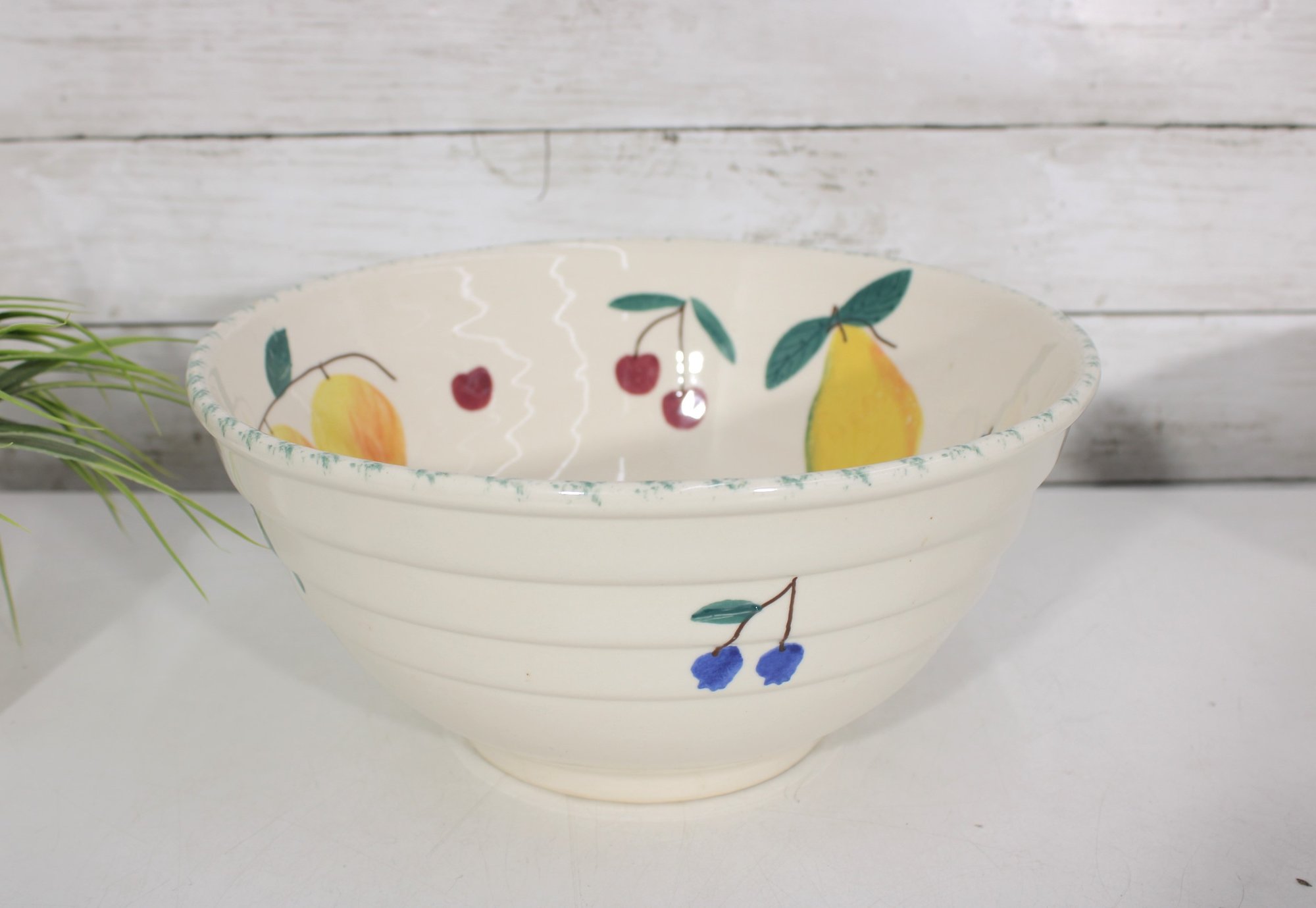 Wonderful set of Vintage Hartstone “Fruit Salad” mixing bowls, made in the USA and dated 1981.