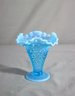 Vintage Hobnail Blue Opalescent Ruffled Edge Vase