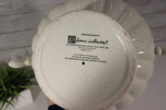 Perfect as a centerpiece, mantel accent, or shelf display, this urn can be styled empty or filled with faux florals, greenery, or seasonal décor. The underside is clearly marked Home Interiors, confirming authenticity.