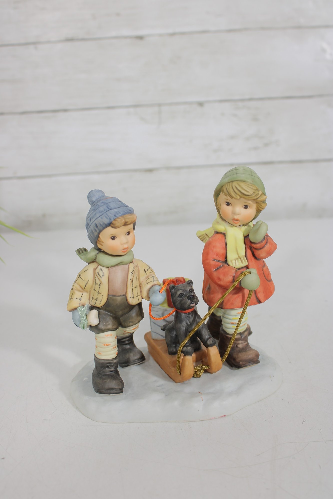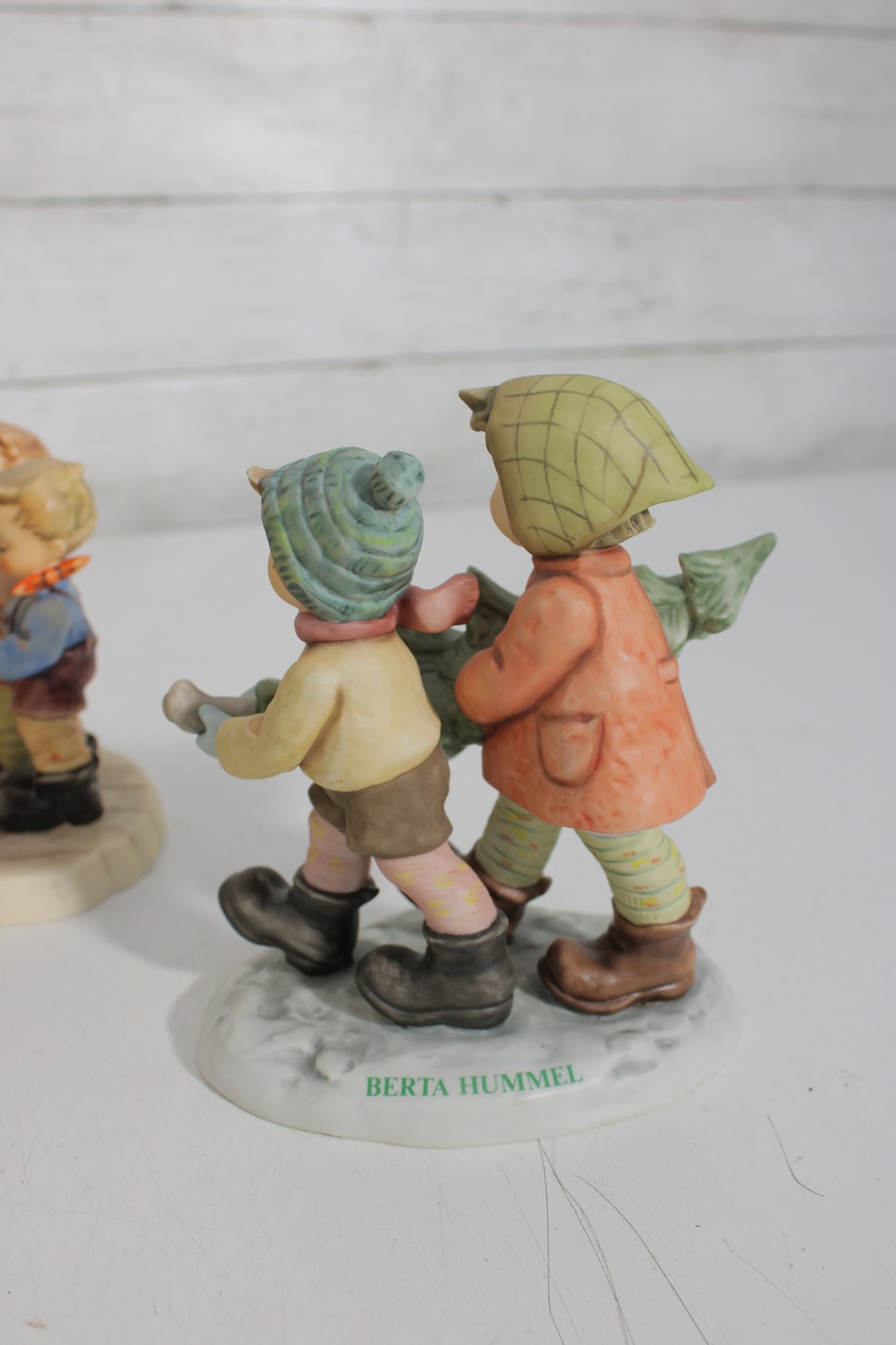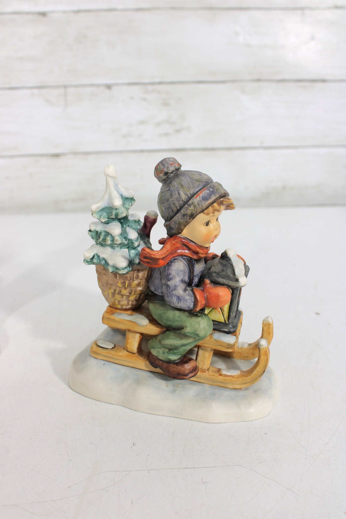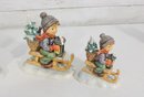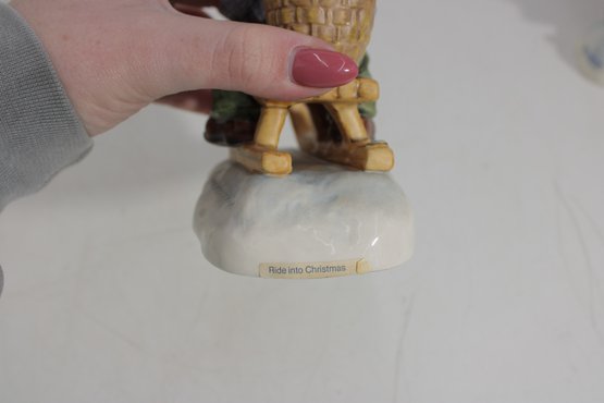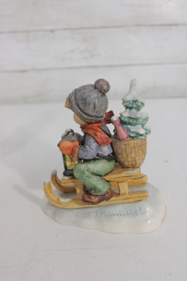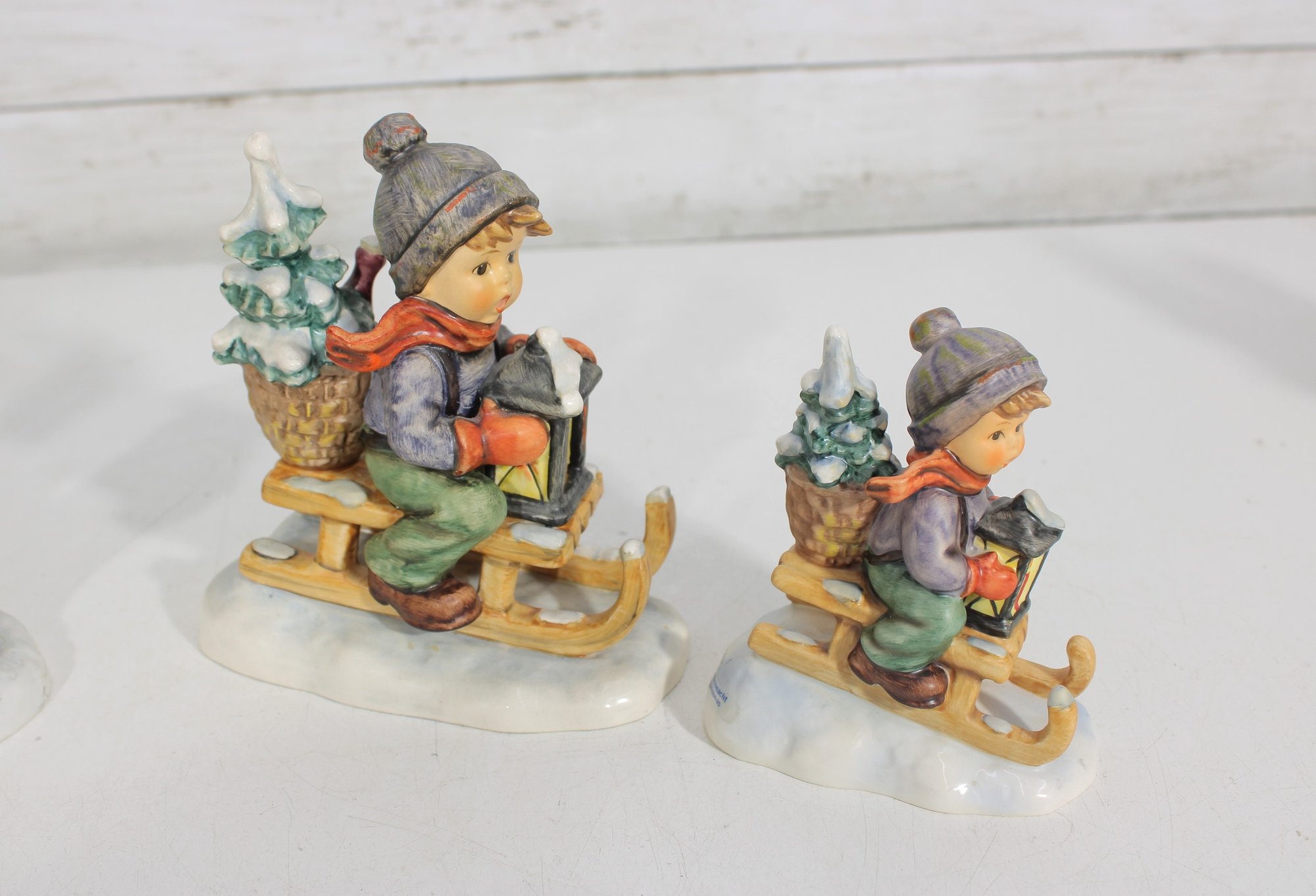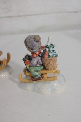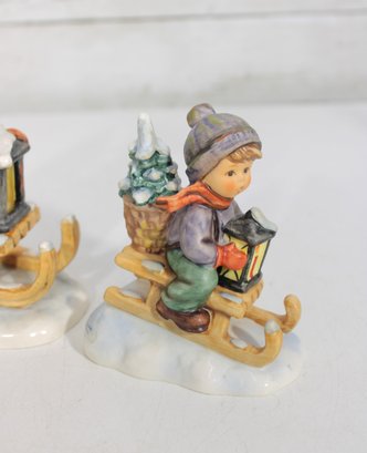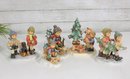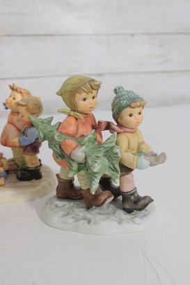 Beautiful group lot of vintage Hummel figurines featuring charming winter and Christmas-themed scenes. This collection includes children sledding, carrying trees, decorating, and enjoying seasonal activities—each rendered in classic Hummel style with detailed hand-painted finishes and soft festive colors.