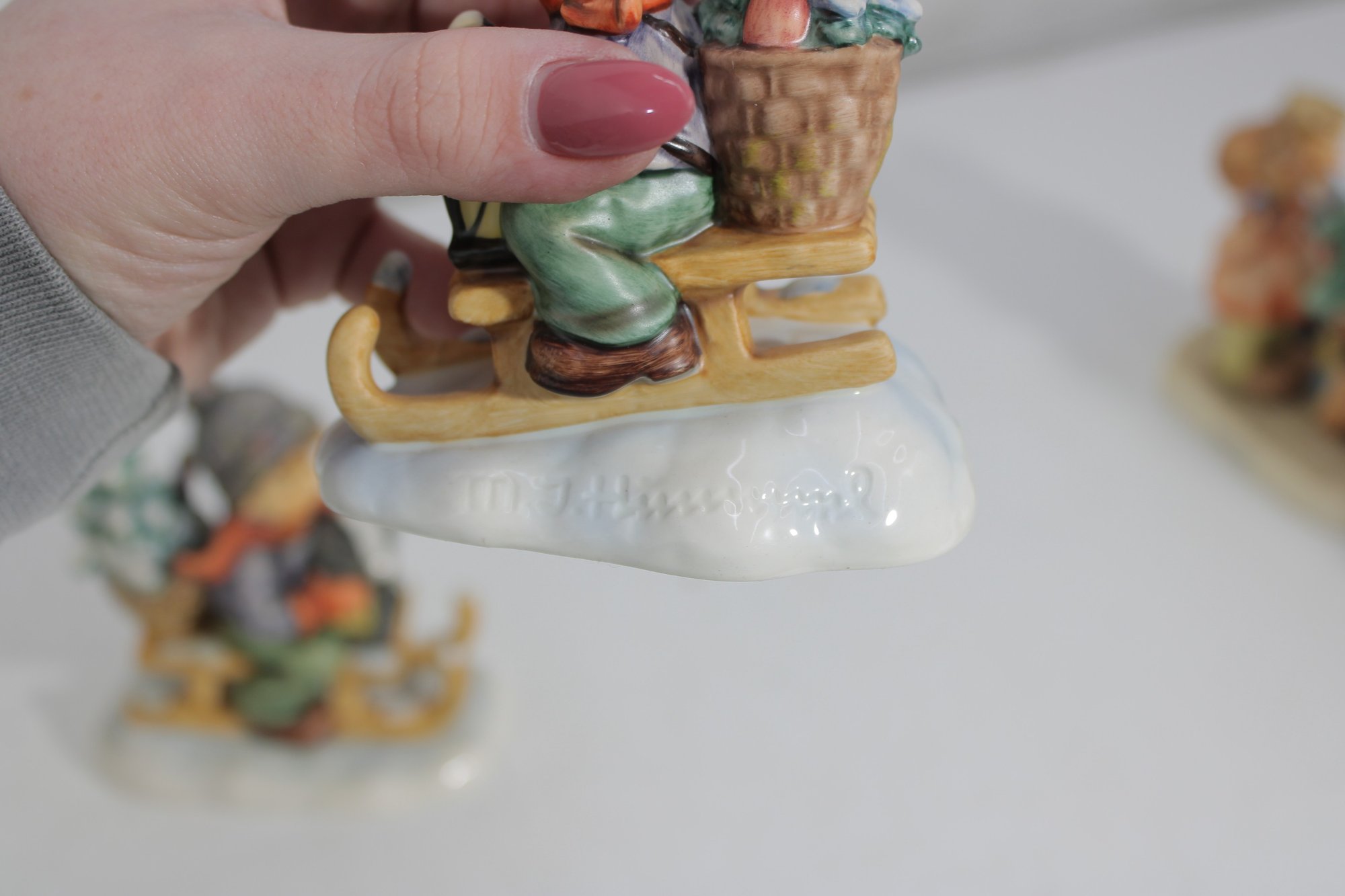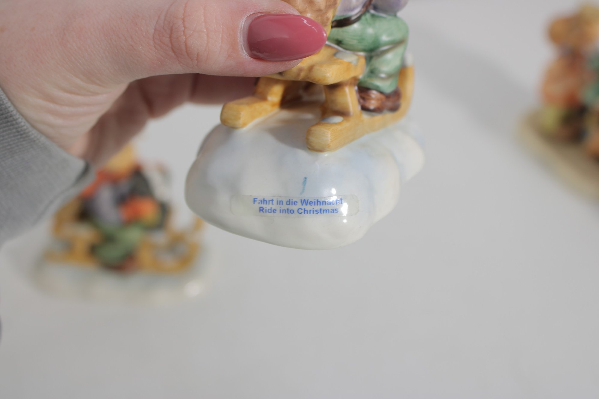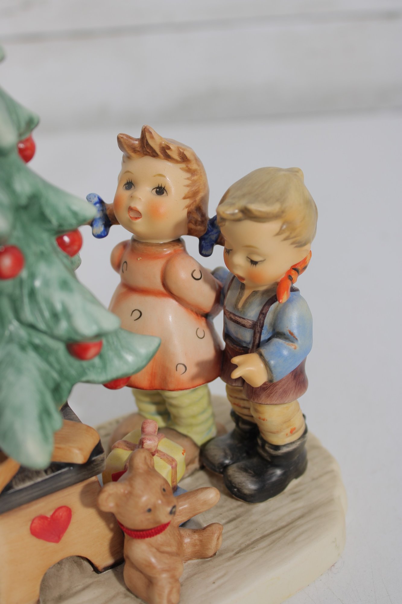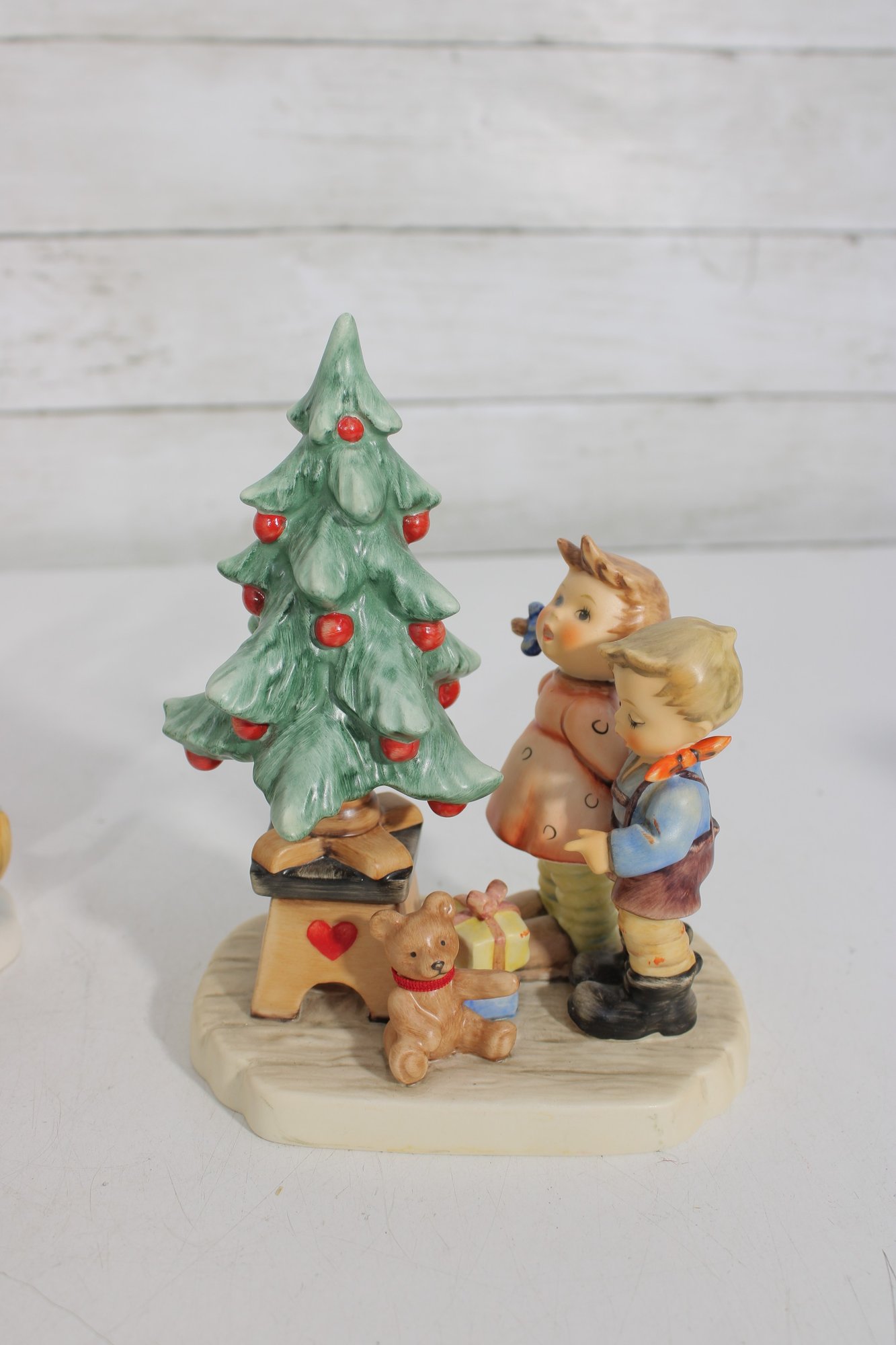 Several pieces are marked Goebel W. Germany, including titled examples such as “Tree Trimming Time”, adding to their collectible appeal.