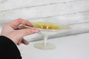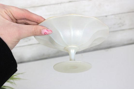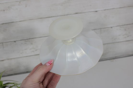 The gently rippled rim and flared bowl give this piece elegant movement, while the pedestal base provides a balanced, classic silhouette. Perfect for use as a display compote, candy dish, trinket bowl, or accent piece.