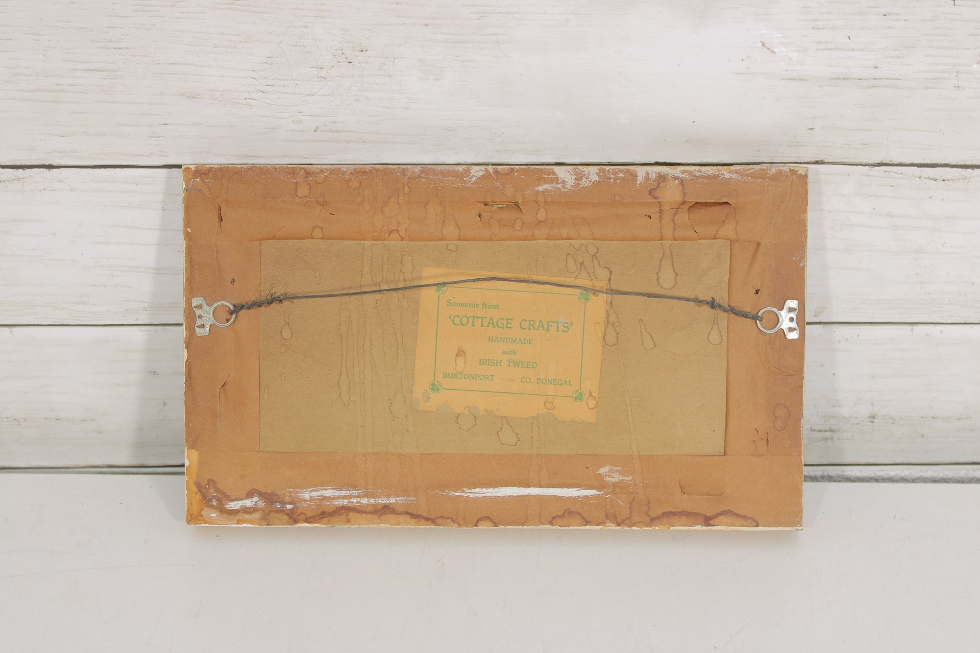 “Souvenir from ‘Cottage Crafts’ Handmade with Irish Tweed – Burtonport, Co. Donegal”, confirming its authenticity and origin.