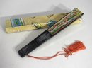 Vintage Japanese Folding Fan Hand-Painted Floral Design With Tassel & Box
