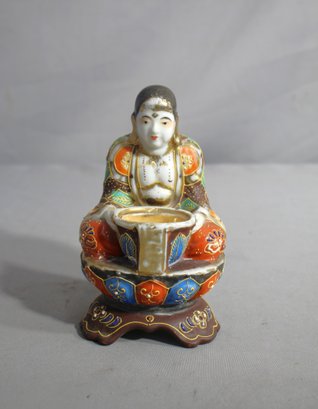 It features a serene, delicately rendered figure, likely from a traditional Asian narrative, cradling a vessel that serves as the incense container. The vivid colors and intricate gold embellishments celebrate the art of fine detailing, making this piece a testament to the skilled hands that crafted it. The base is adorned with rich hues and scroll motifs that add to its elegance. Ideal for those who appreciate the beauty of hand-painted ceramics, this incense holder will not only elevate your decor but also enhance your meditative or relaxation practices with its practical use.