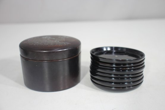 Vintage Japanese Lacquerware Round Coasters With Mother Of Pearl Inlay 3