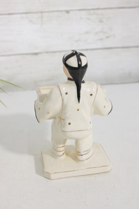Standing approximately 6 inches high, the figure is finely detailed with hand-painted accents, including facial features, traditional attire, and subtle gold highlights. The serpent handle adds a distinctive and symbolic element, enhancing its visual appeal.