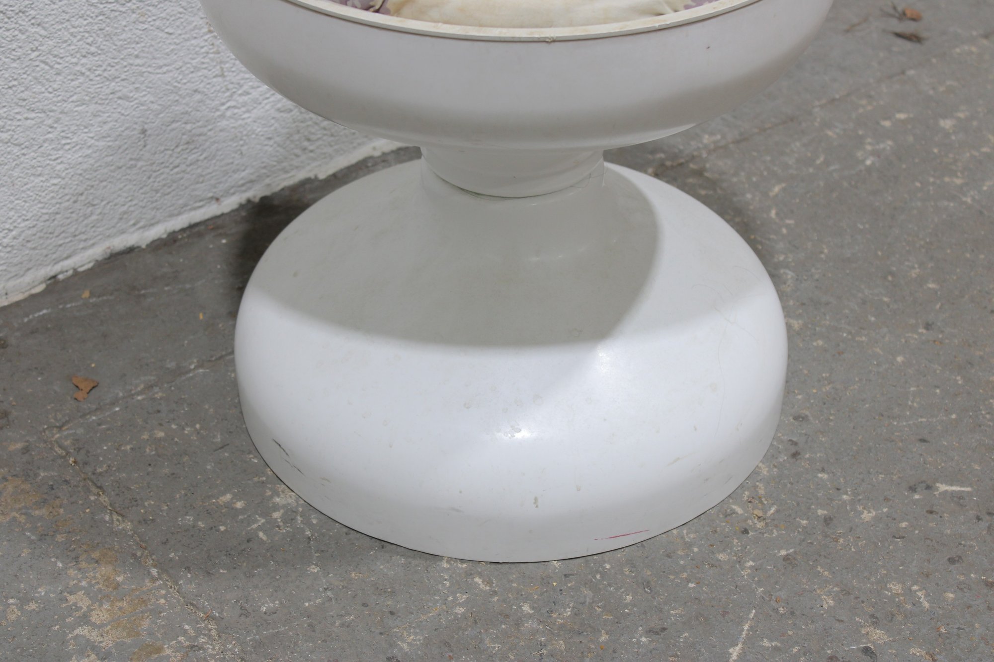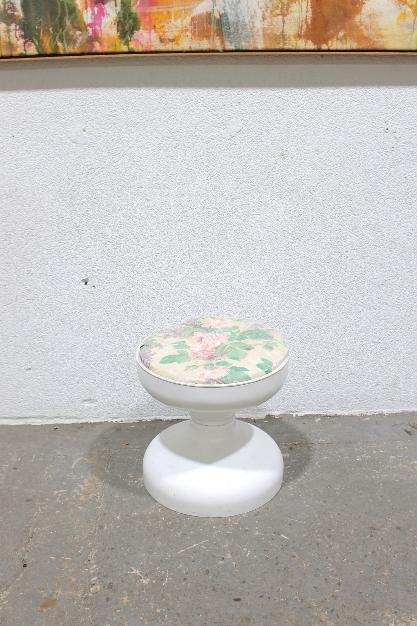 vintage Kartell “Rocchetto” stool, a classic example of Italian modern design. Featuring a sculptural white molded plastic base with a soft, rounded silhouette, this piece is both functional and visually appealing.