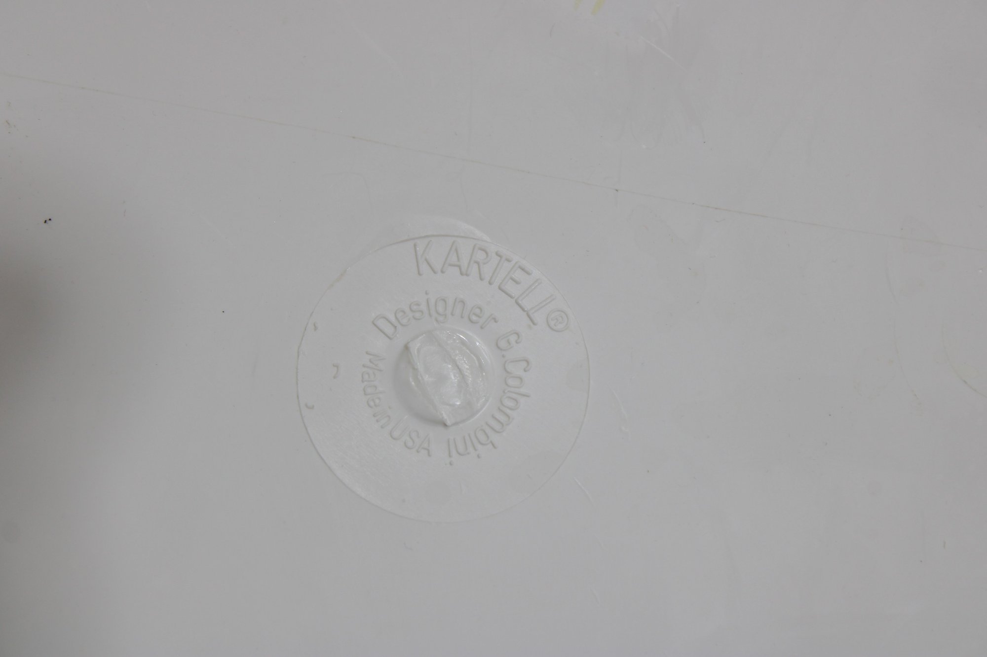 The clean cylindrical form makes it both practical and visually versatile, fitting seamlessly into modern, mid-century, or contemporary interiors. The base is marked with the Kartell stamp, confirming its authenticity.
