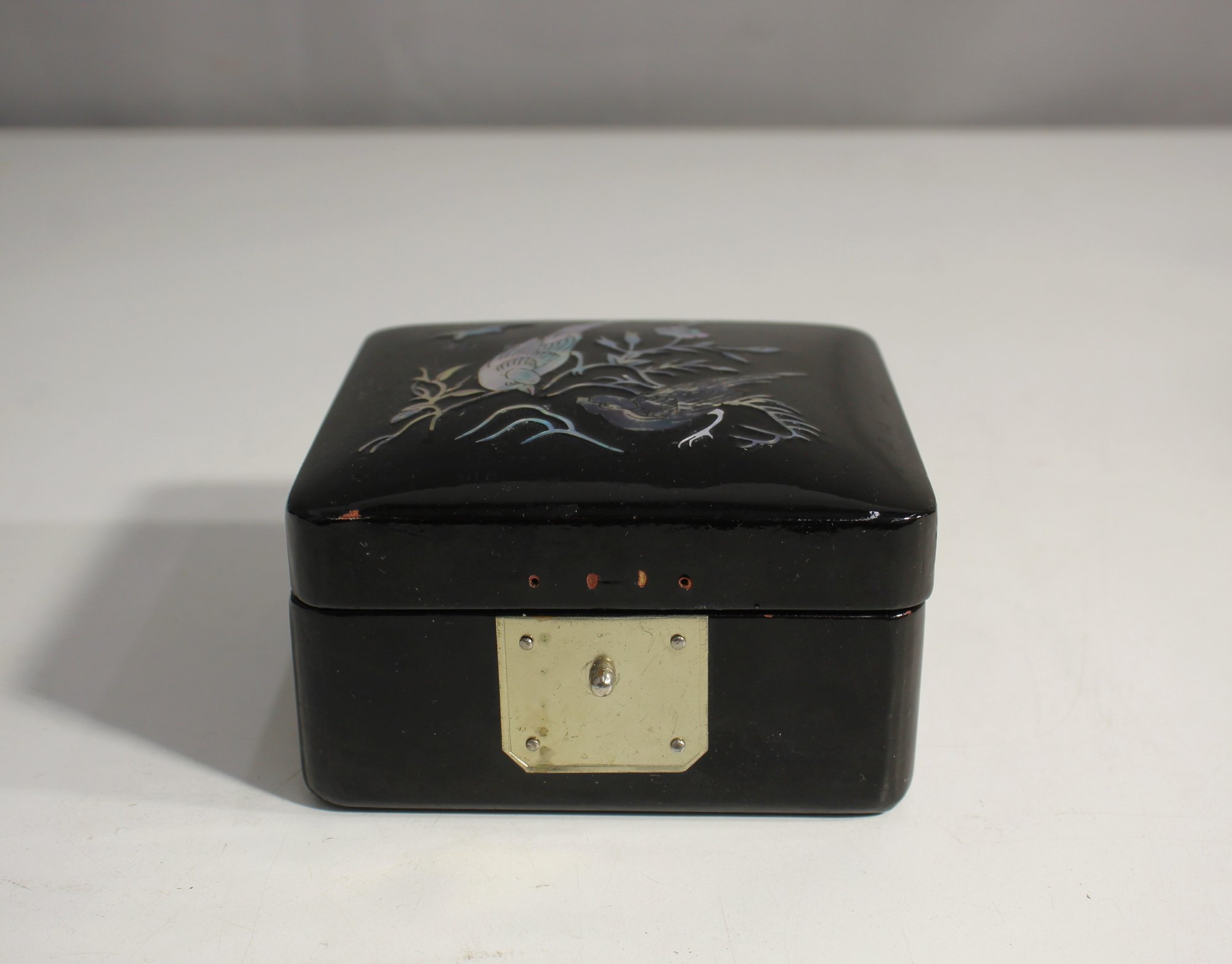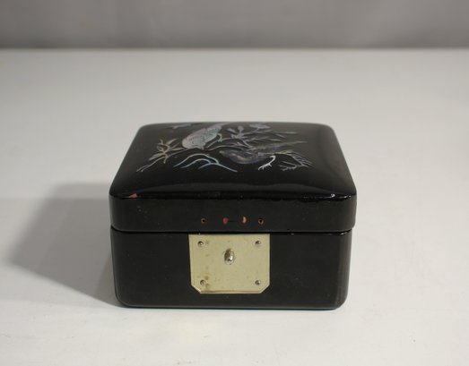 Vintage Korean Lacquer Jewelry Box With Inlaid Bird Design 2.5"h X 4"w