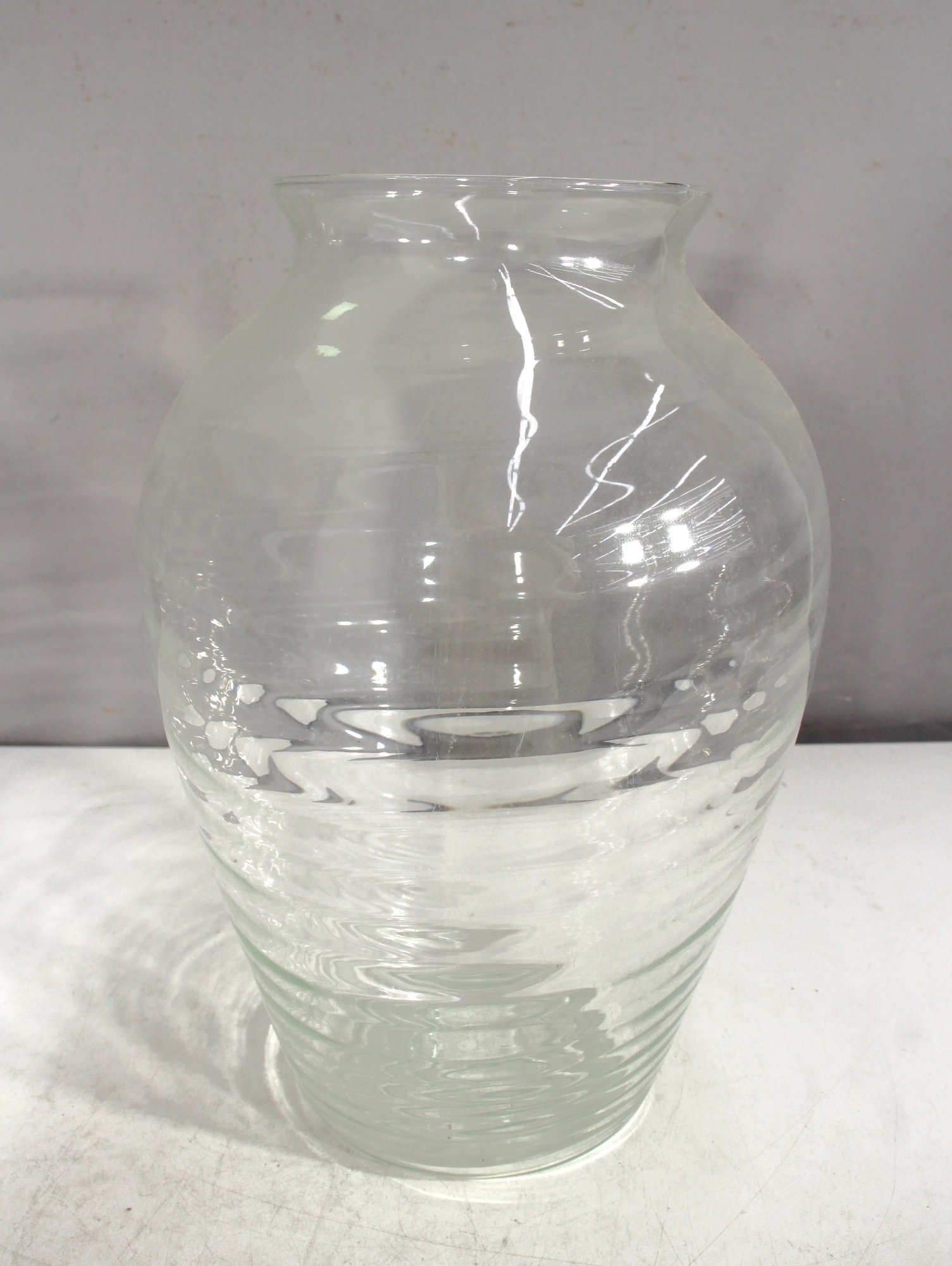 Vintage Large Hand-Blown Clear Glass Vase Textured Pattern