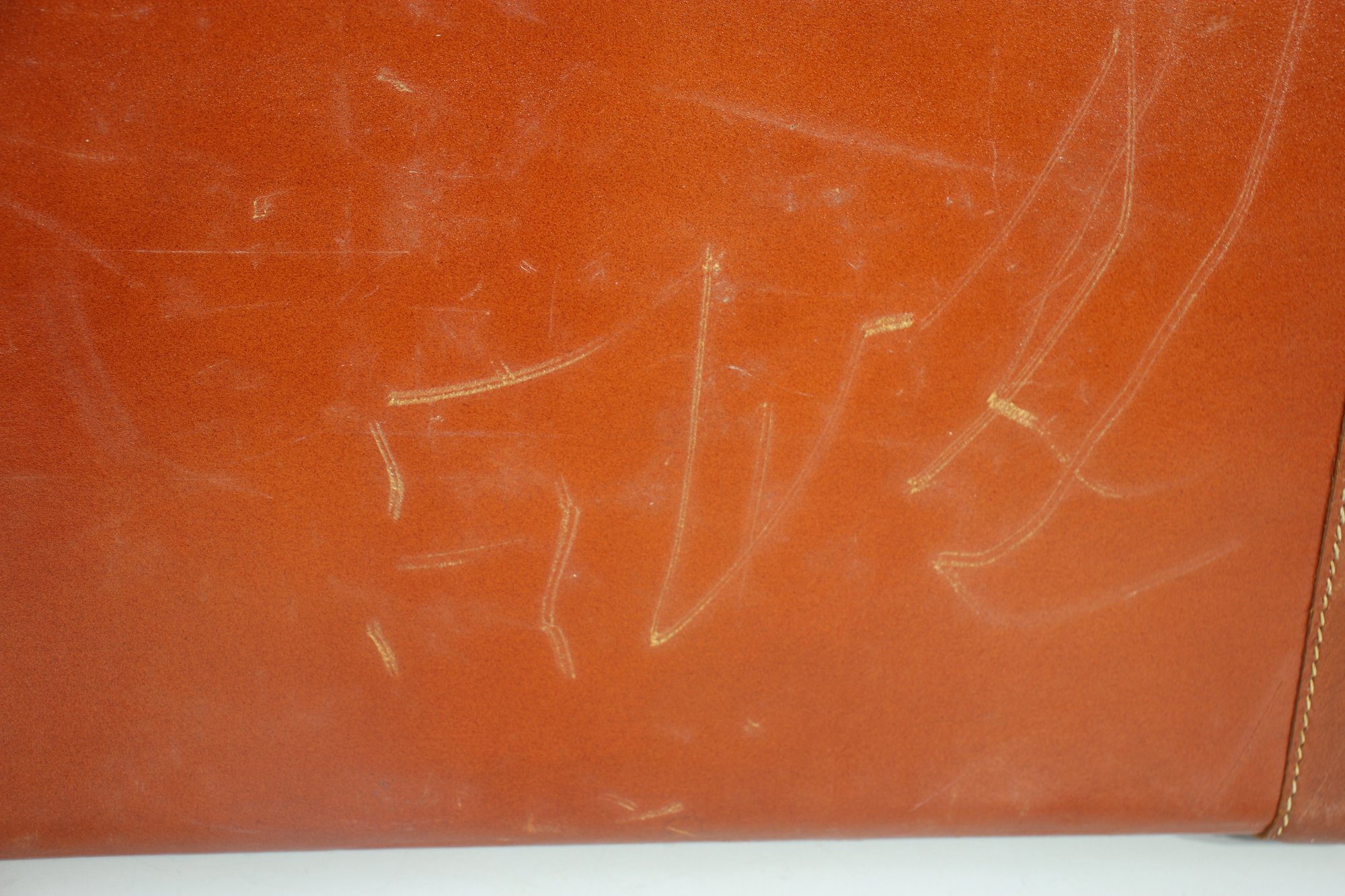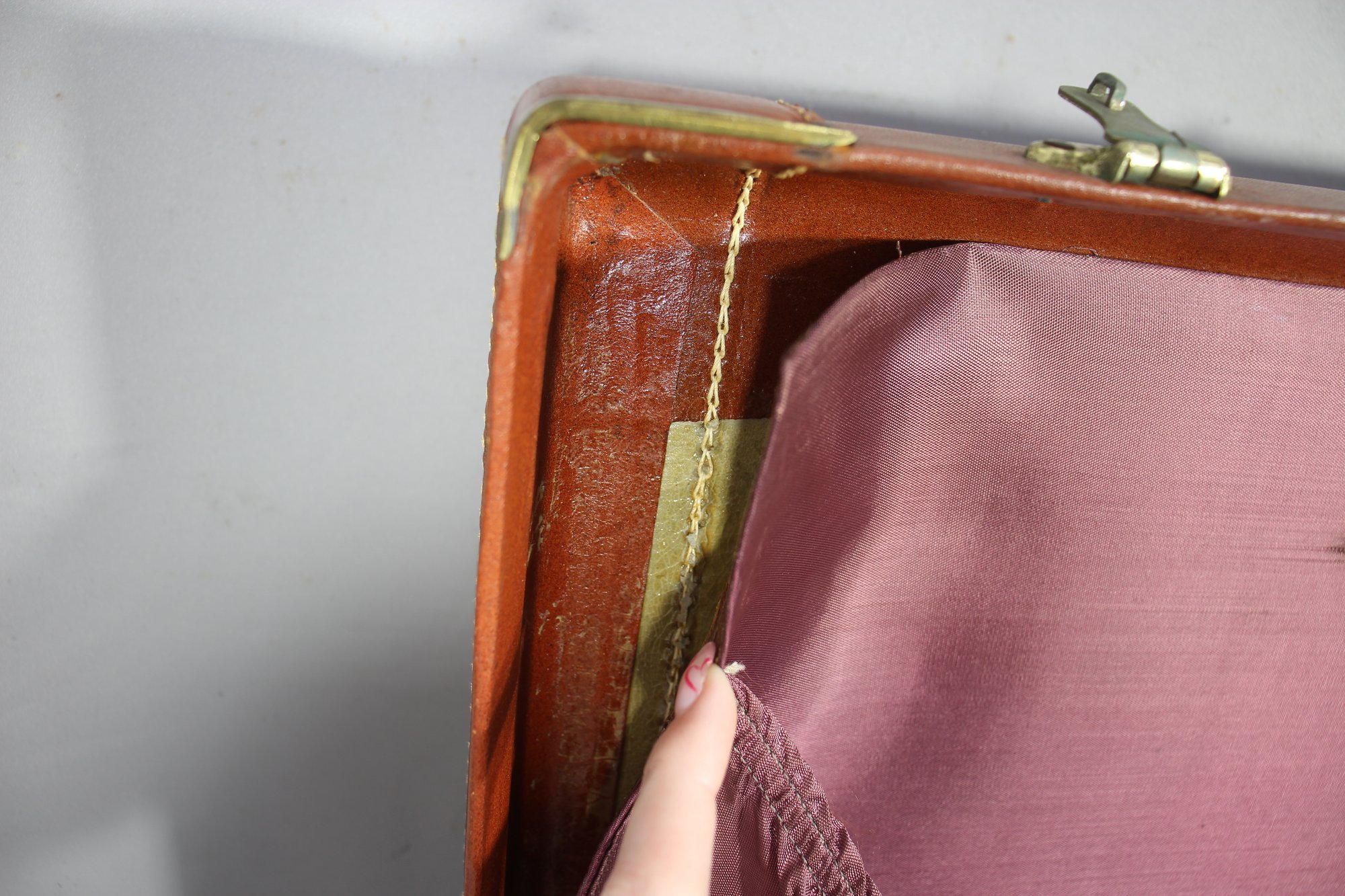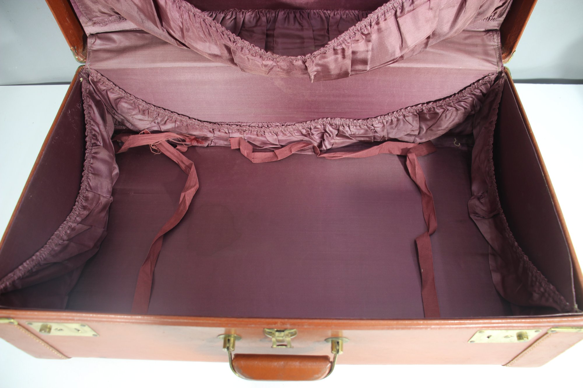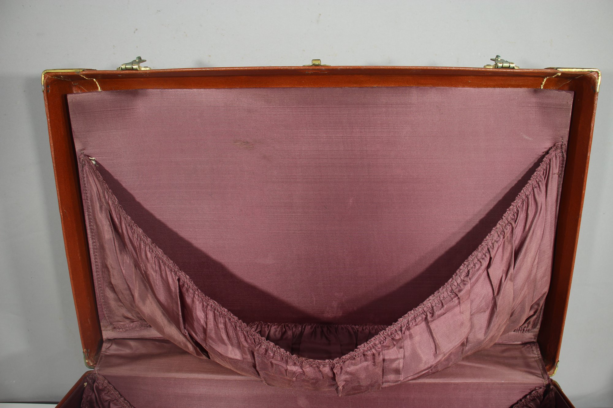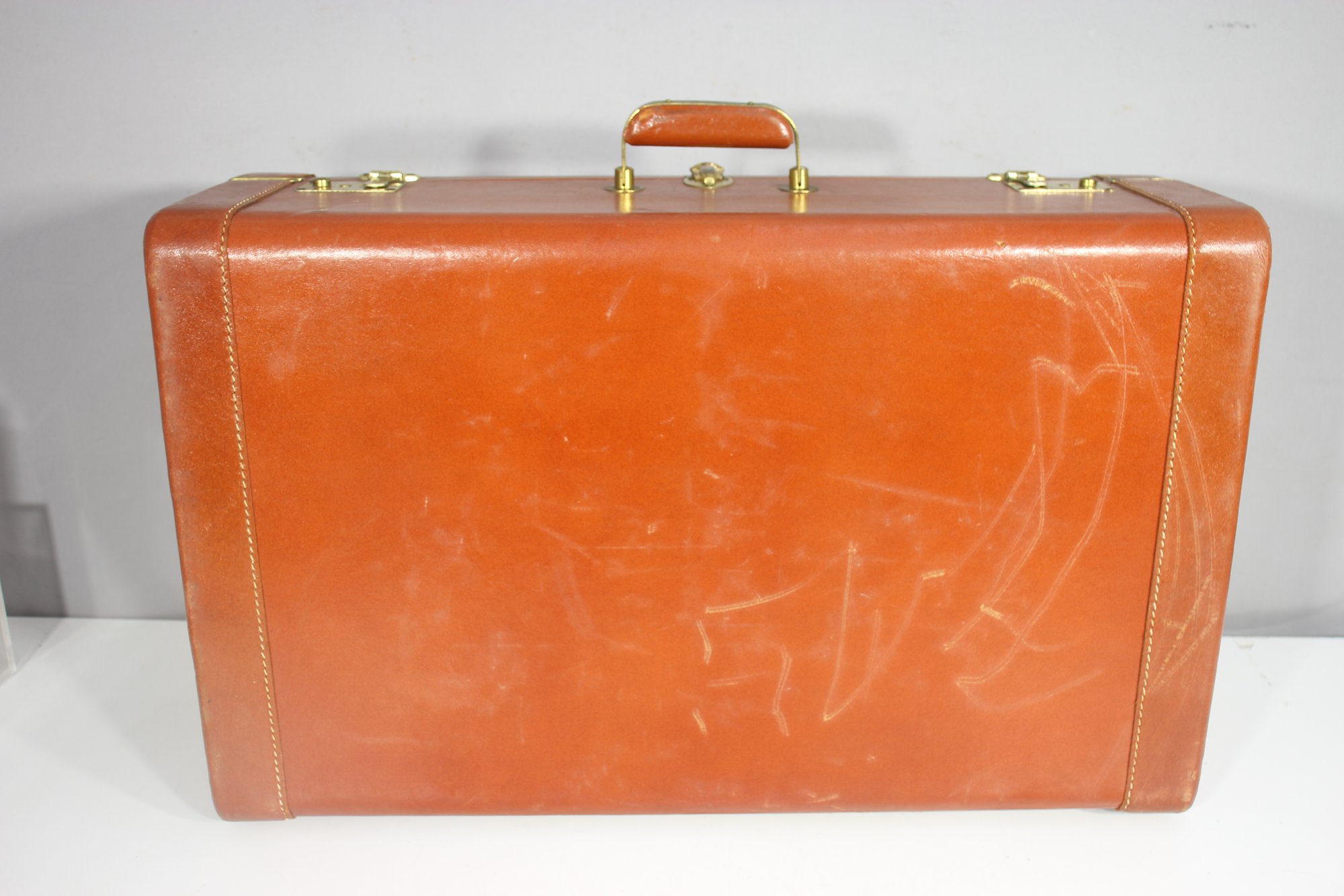 Step back in time with this stunning vintage leather hard-shell suitcase, perfect for collectors, travelers, or home decor enthusiasts. This classic suitcase features a rich brown leather exterior with brass hardware, exuding timeless elegance and durability.