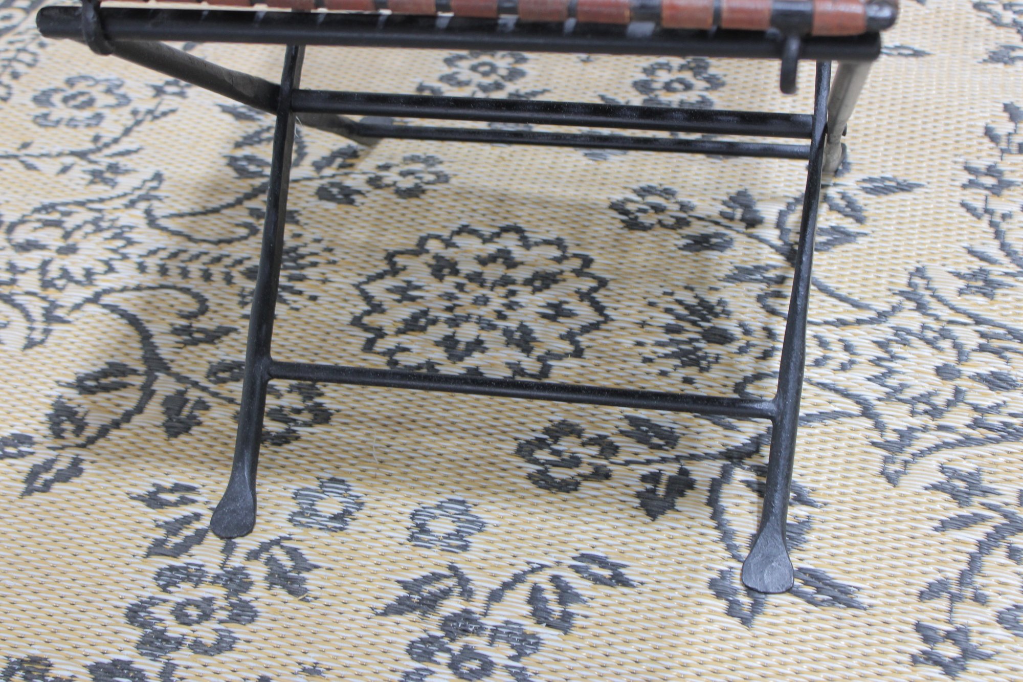 Add rustic character and functional style to your space with this vintage leather strap folding stool. Featuring a hand-forged wrought iron frame and a woven top grain leather seat, this piece blends durability with timeless craftsmanship.