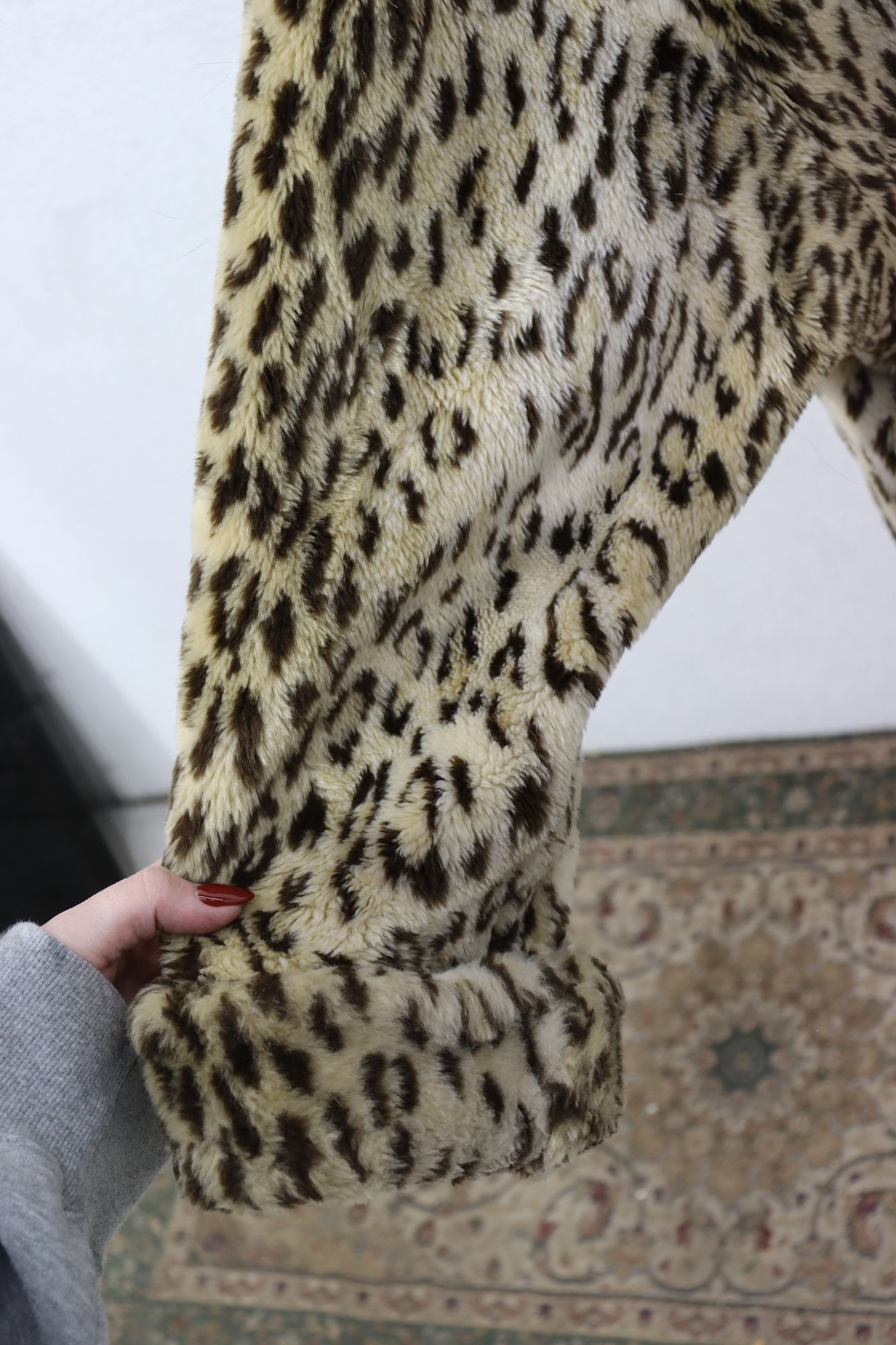 Turn heads with this vintage leopard print faux fur coat, a timeless statement piece that exudes both glamour and confidence. Crafted with a plush, soft texture and designed for a relaxed yet flattering fit, this coat blends vintage charm with bold fashion flair.