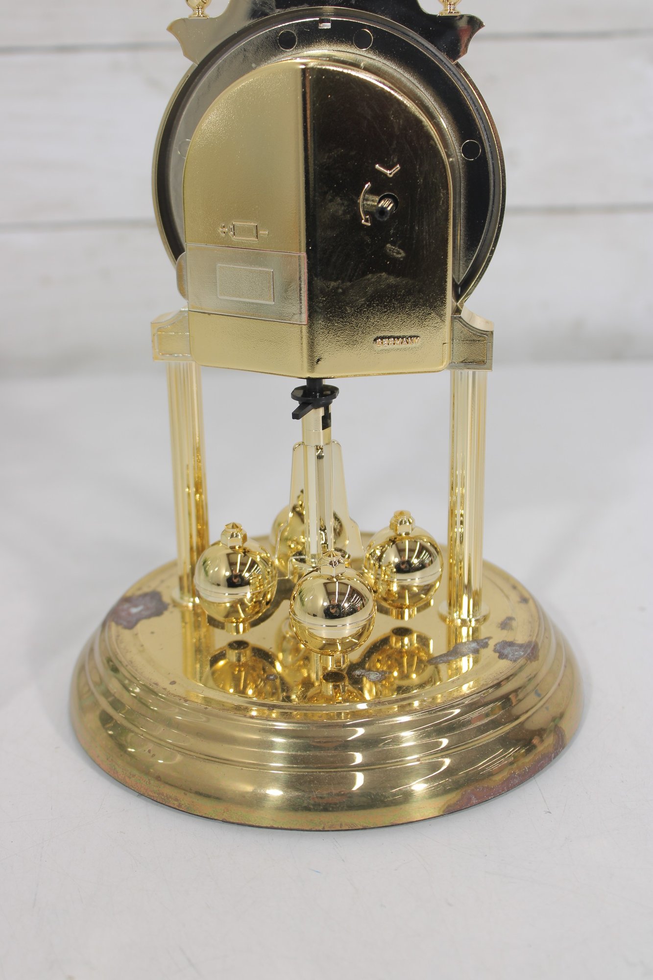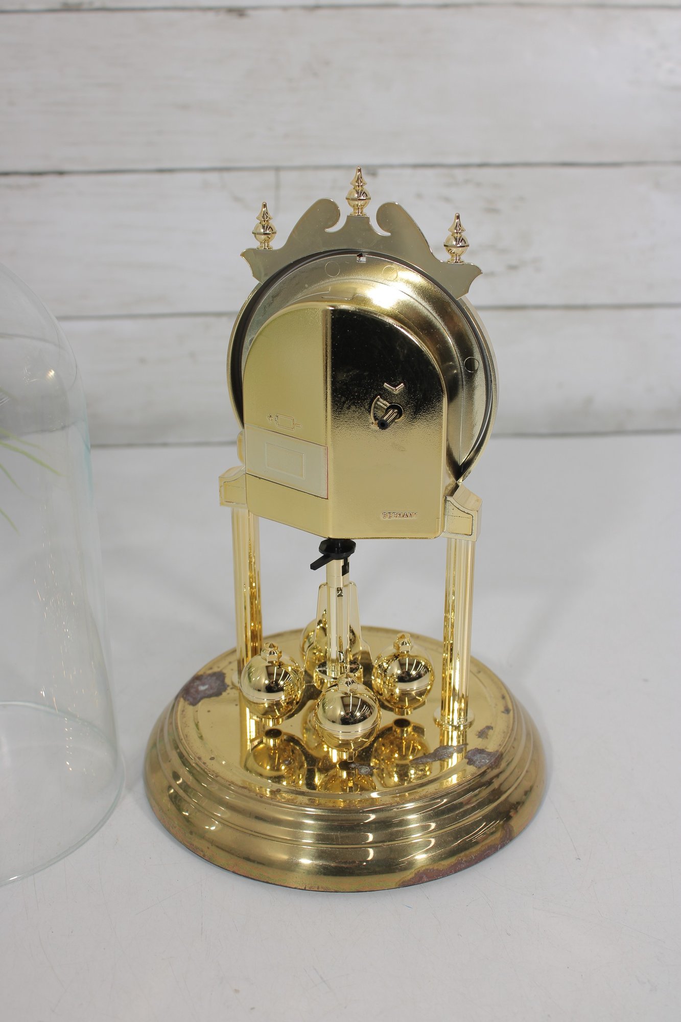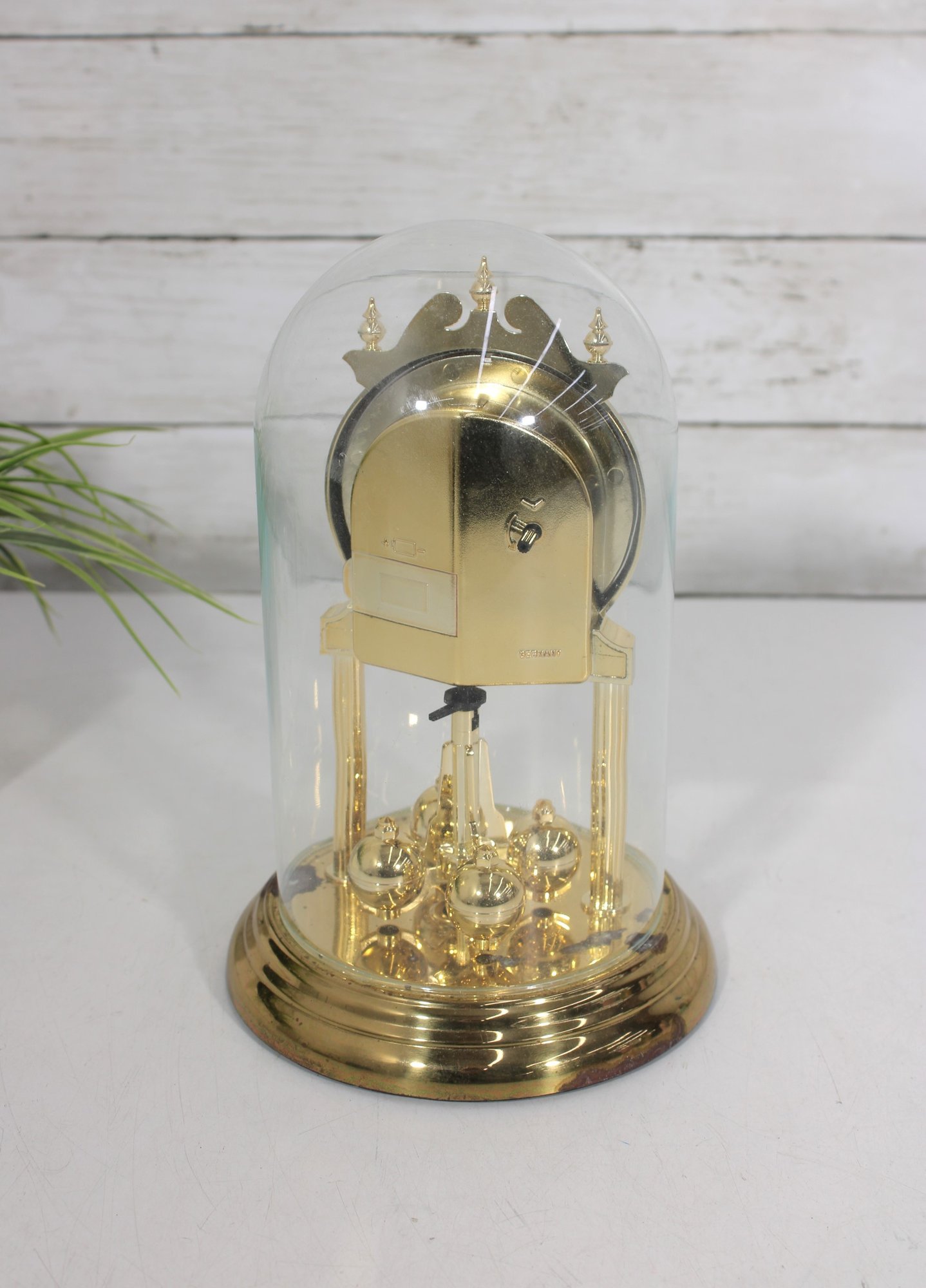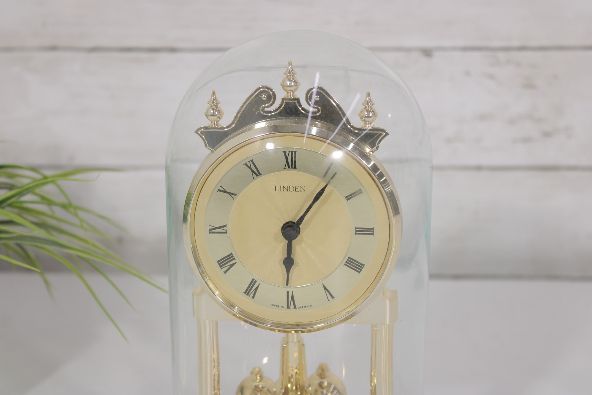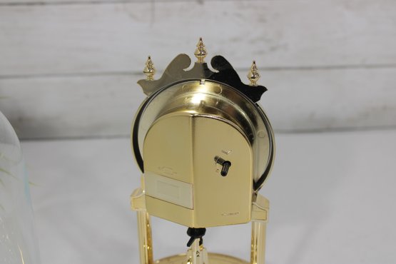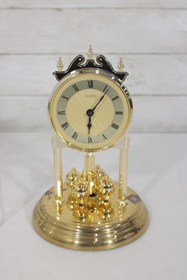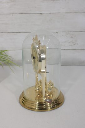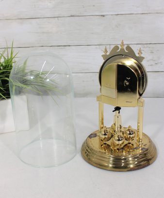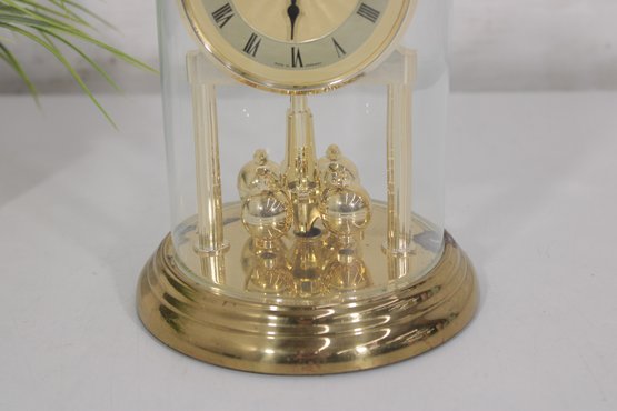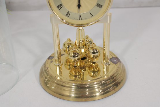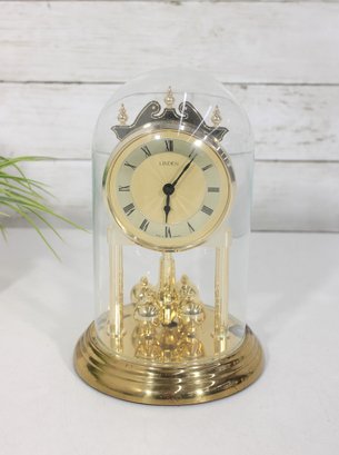 Vintage Linden Style Anniversary Clock Glass Dome Torsion Mantel Clock 9" Gold Tone Untested