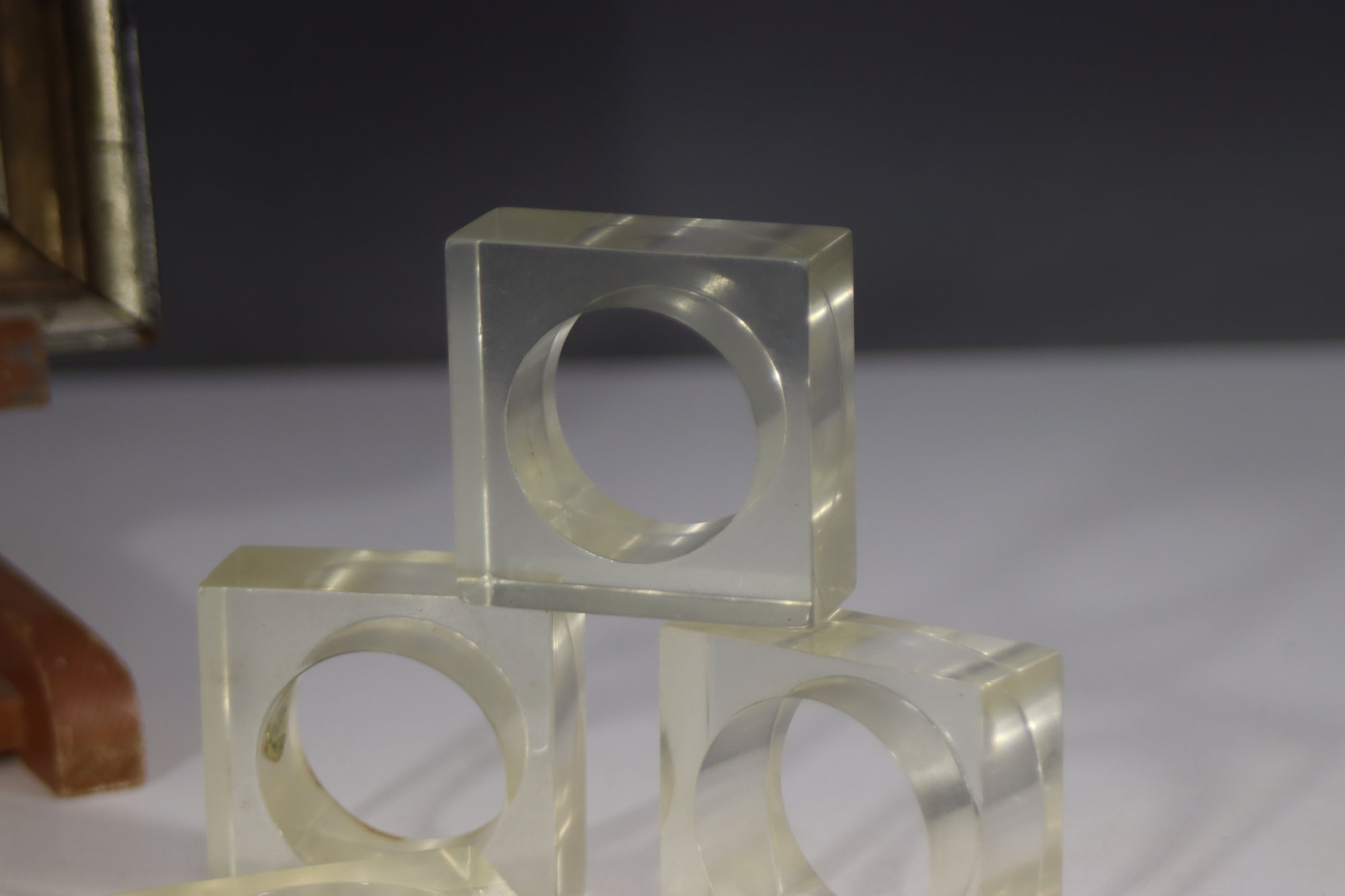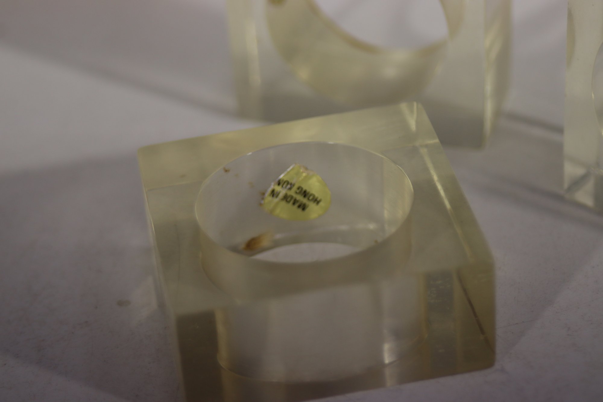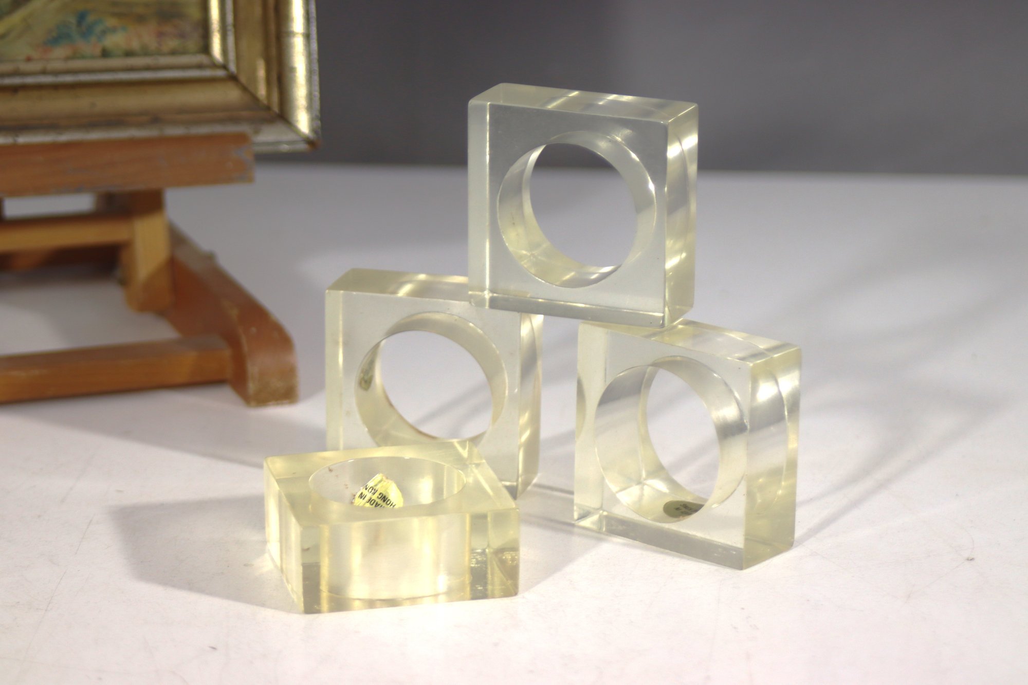 Vintage Lucite Napkin Ring Set Modernist Clear Square Design (Set Of 4)