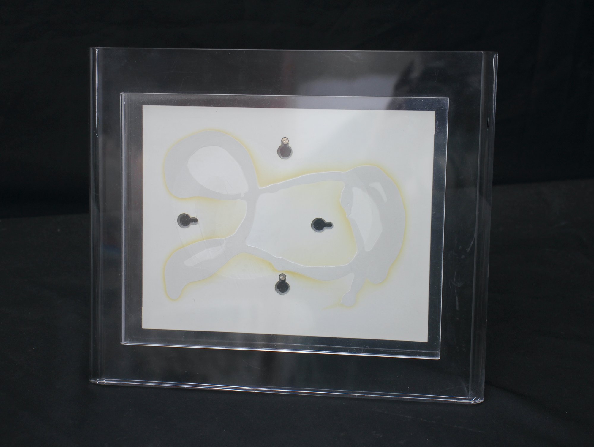 this vintage lucite picture frame is a stunning display piece for any cherished photograph or artwork. Featuring a minimalist modern design, the frame is constructed entirely of clear lucite, allowing the focus to remain on the content inside. Its sturdy stand ensures stable placement on any tabletop or shelf. Perfect for home or office décor, this frame combines functionality with a sleek aesthetic appeal. Frame dimensions and condition details available upon request. Add a touch of sophistication to your display collection!