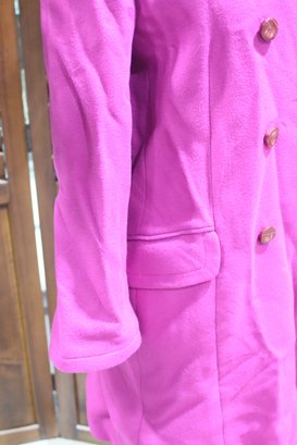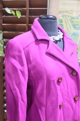 Step out in vibrant elegance with this stunning magenta double-breasted coat. Featuring bold button details and a structured silhouette, this coat is a perfect statement piece for any wardrobe.