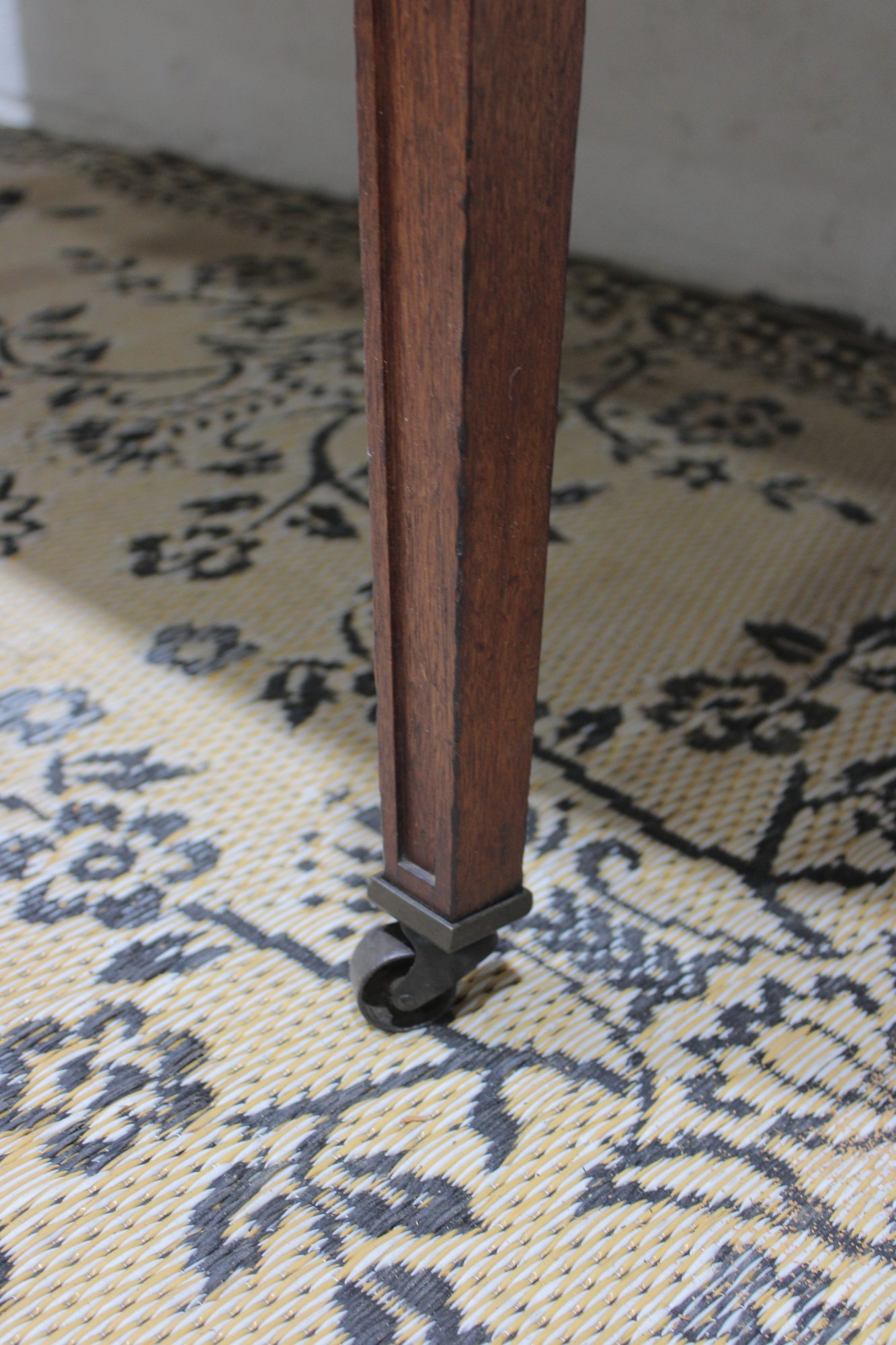 Supported by tapered legs with brass-capped casters, the piece has a refined and sophisticated appearance while remaining easy to reposition when needed.