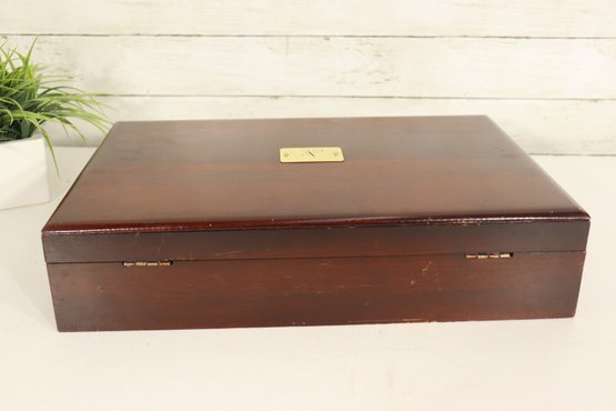 Vintage Mahogany Silverware Flatware Storage Chest Monogram S 4" X 18" X 12"