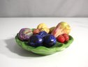 Crafted with intricate care, the ceramic fruits are fixed onto the leaf-shaped plate, creating a charming, one-of-a-kind display that exudes rustic charm. This decorative piece is perfect for adding a touch of nature-inspired beauty to your home décor.