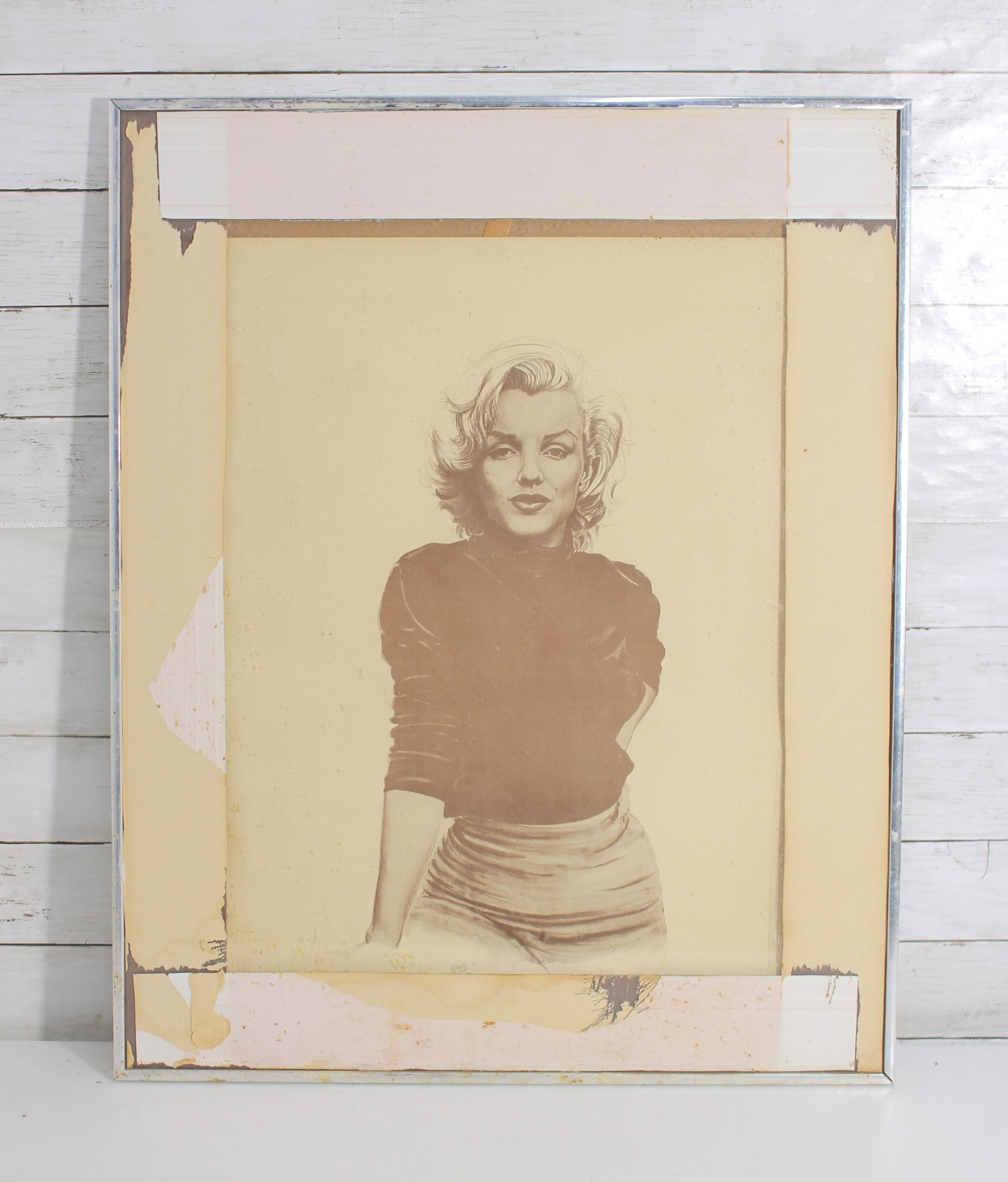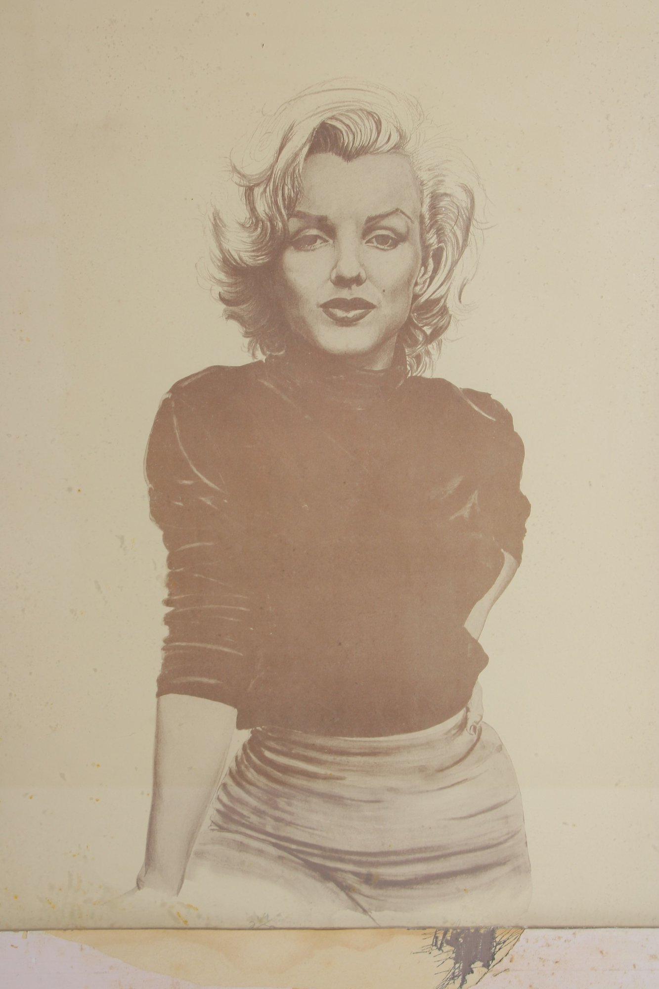 Classic Marilyn Monroe portrait print featuring a timeless sepia-toned image of the iconic Hollywood star. This elegant depiction captures Marilyn’s signature beauty and charm, making it a great decorative piece for collectors of vintage Hollywood memorabilia or classic film icons.