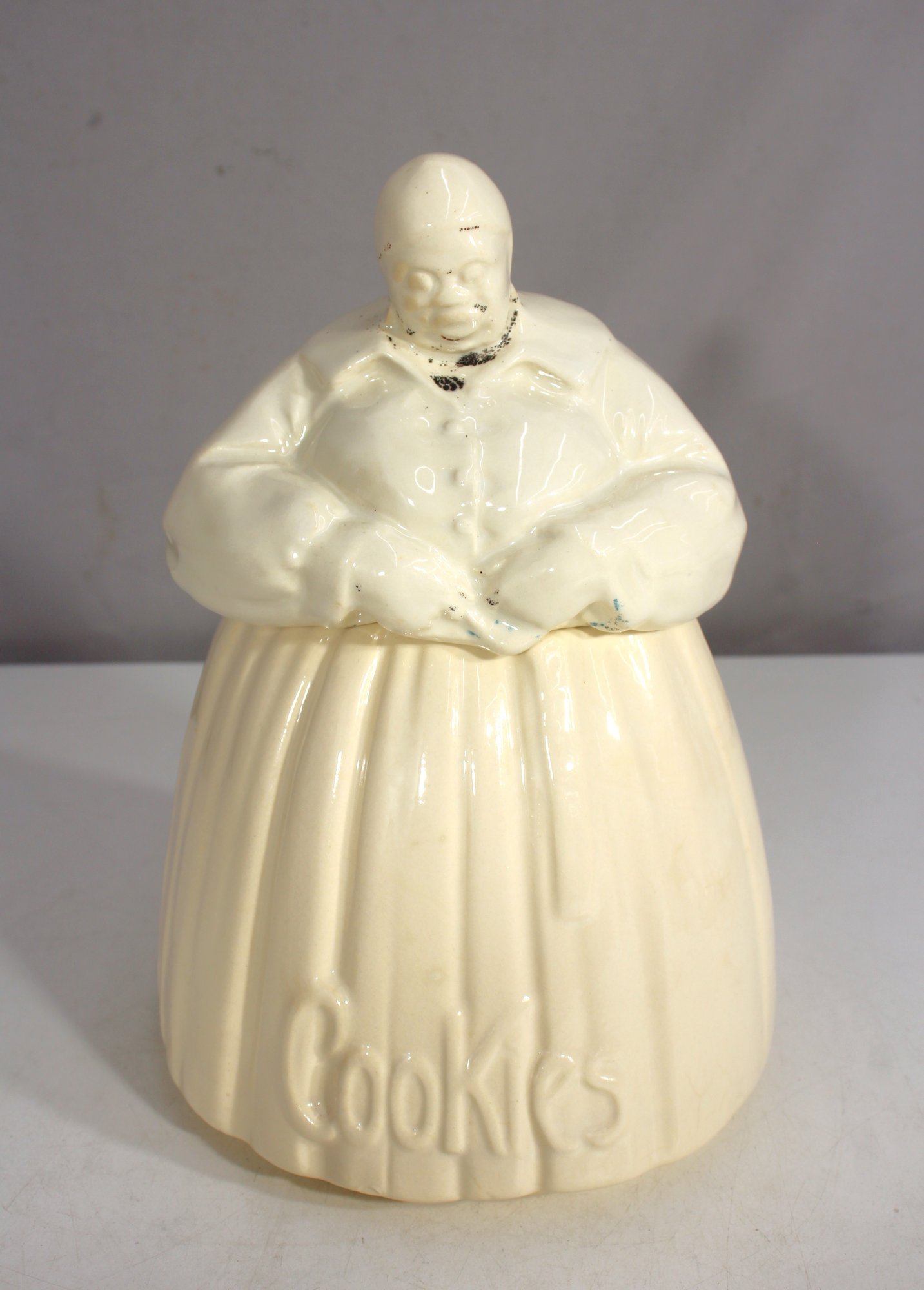 This cookie jar is a staple for vintage kitchenware collectors and McCoy enthusiasts alike. It makes a fantastic addition to any retro decor, farmhouse kitchen, or pottery collection.