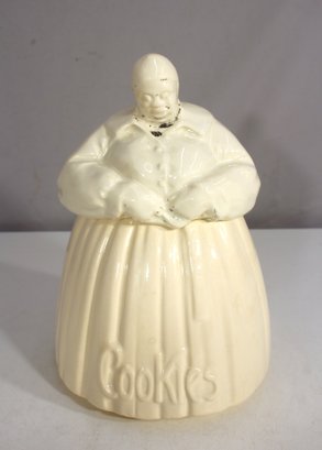 a vintage McCoy Pottery Mammy Cookie Jar, standing approximately 11 inches tall. This iconic and highly collectible ceramic cookie jar features a classic cream-colored glaze with embossed "Cookies" text on the front. The underside is marked "McCoy", confirming its authenticity as a genuine piece of McCoy Pottery.