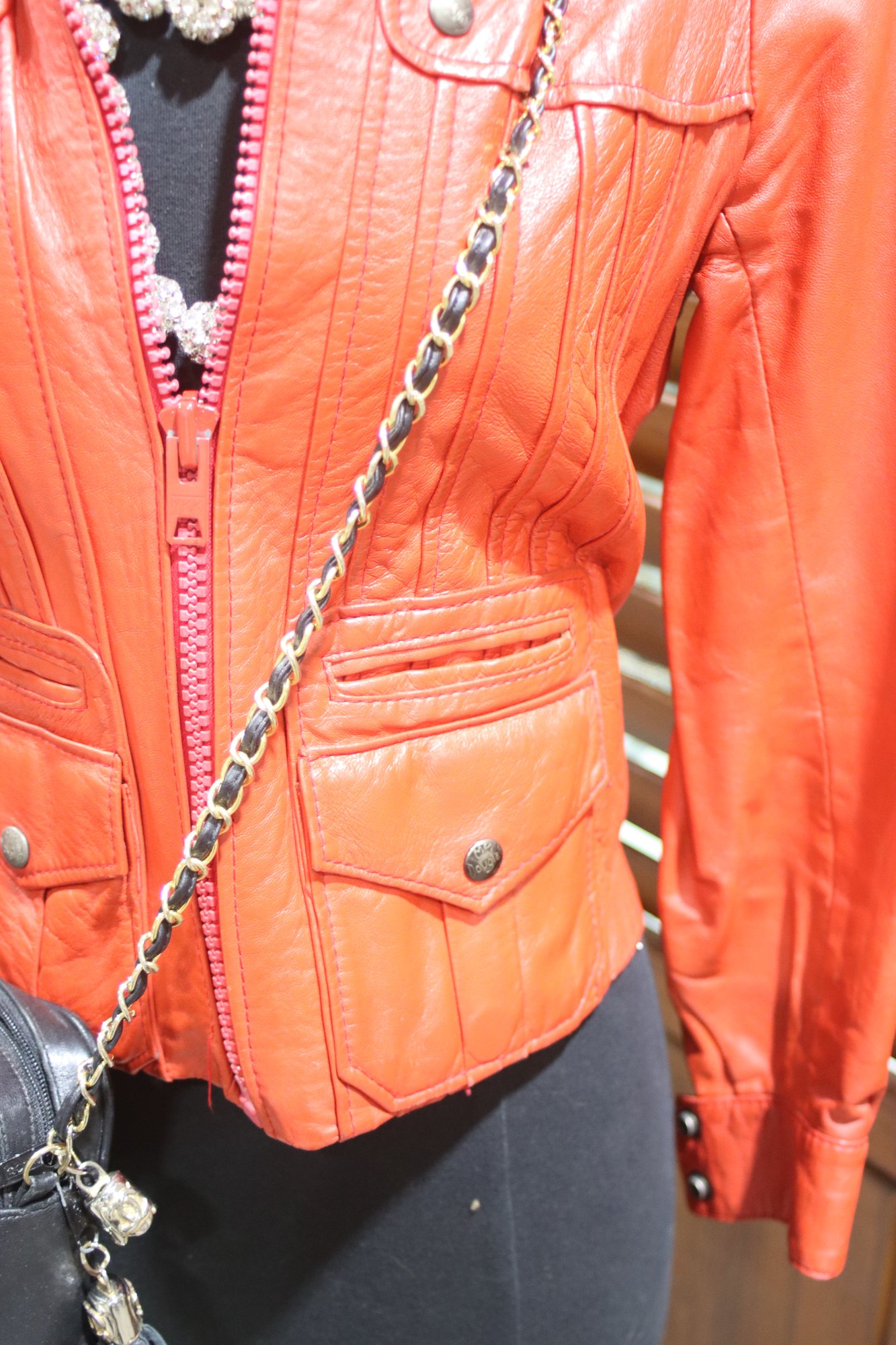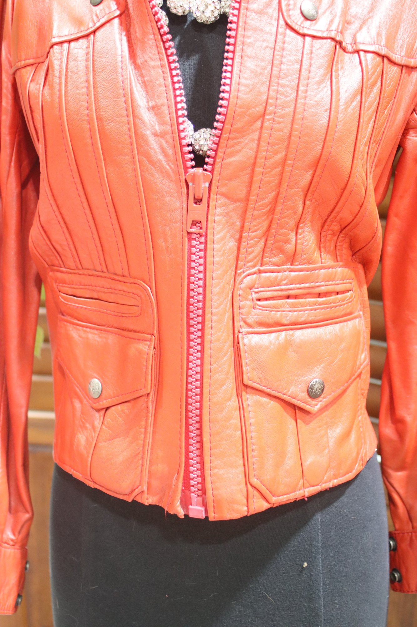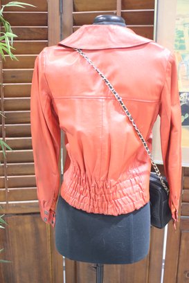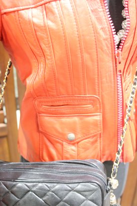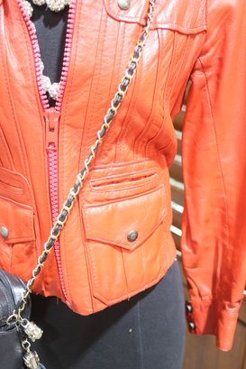 Turn heads with this stunning vintage McDouglas Paris red leather jacket, a rare and stylish piece perfect for adding bold sophistication to any wardrobe. Crafted from genuine leather, this fitted jacket features exquisite detailing and a striking red hue, making it a standout fashion statement.
