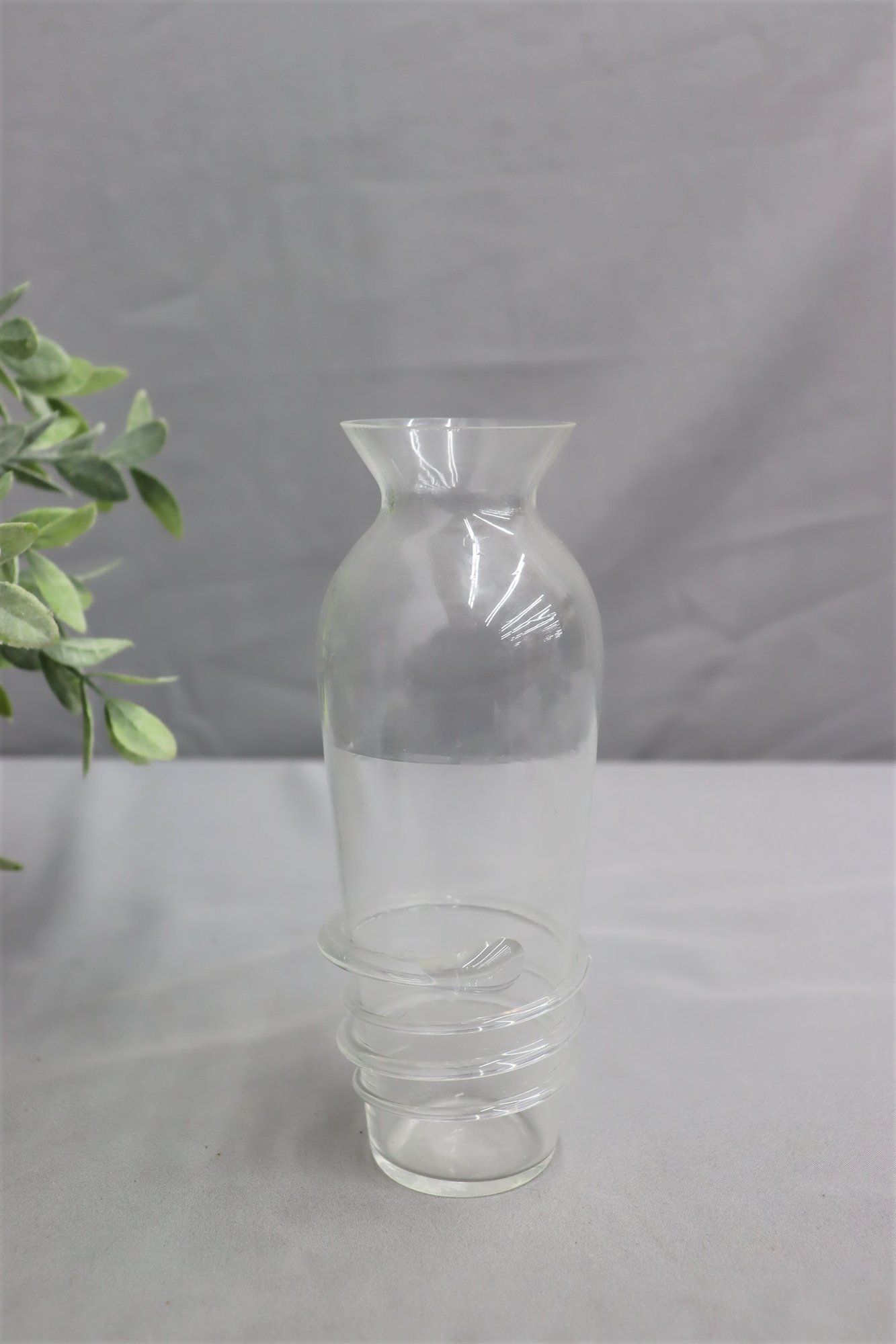 Vintage MCM Clear Art Glass Vase With Applied Clear Glass Helix