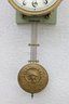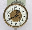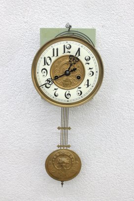Classic vintage mechanical wall clock featuring a traditional round dial, ornate black hands, and a visible pendulum with decorative brass medallion. This elegant timepiece has a timeless design, with a cream dial, bold Arabic numerals, and a detailed brass center.