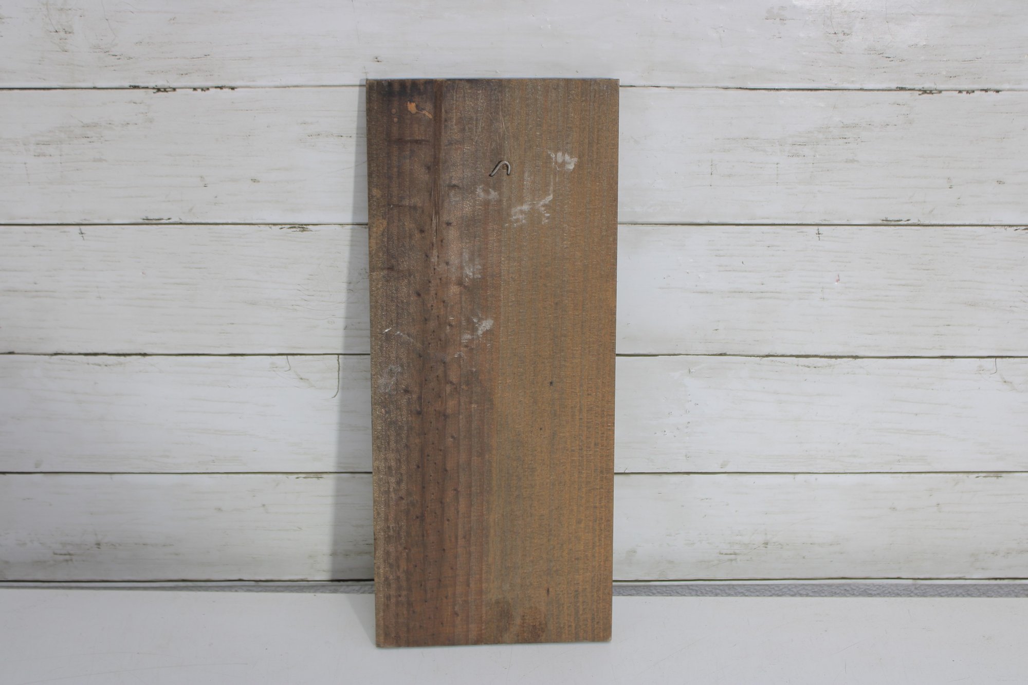 Mounted within a rustic wood frame, this narrow wall panel makes a unique decorative accent — perfect for cottage, farmhouse, or eclectic gallery wall displays.