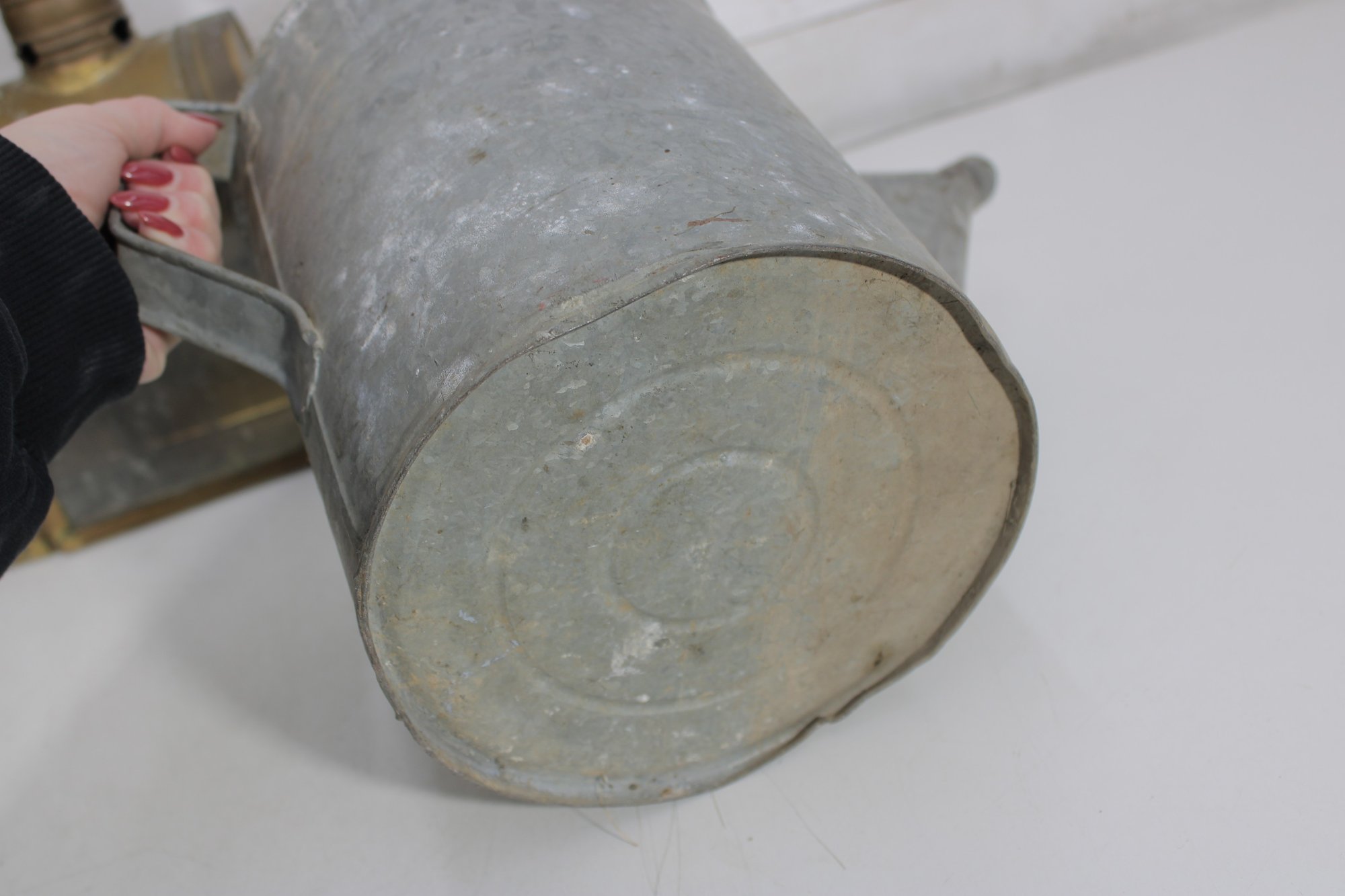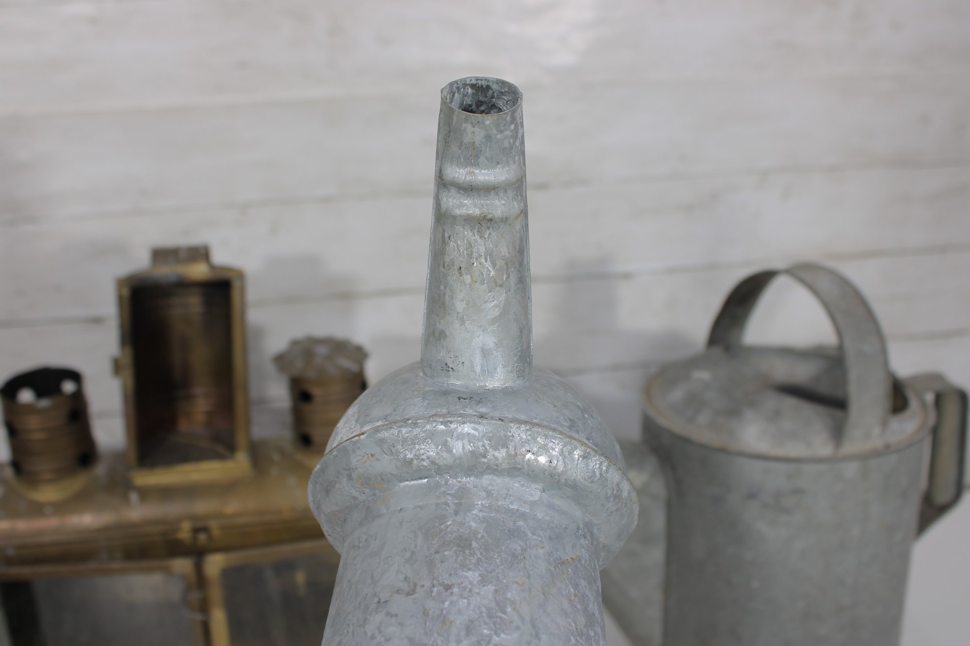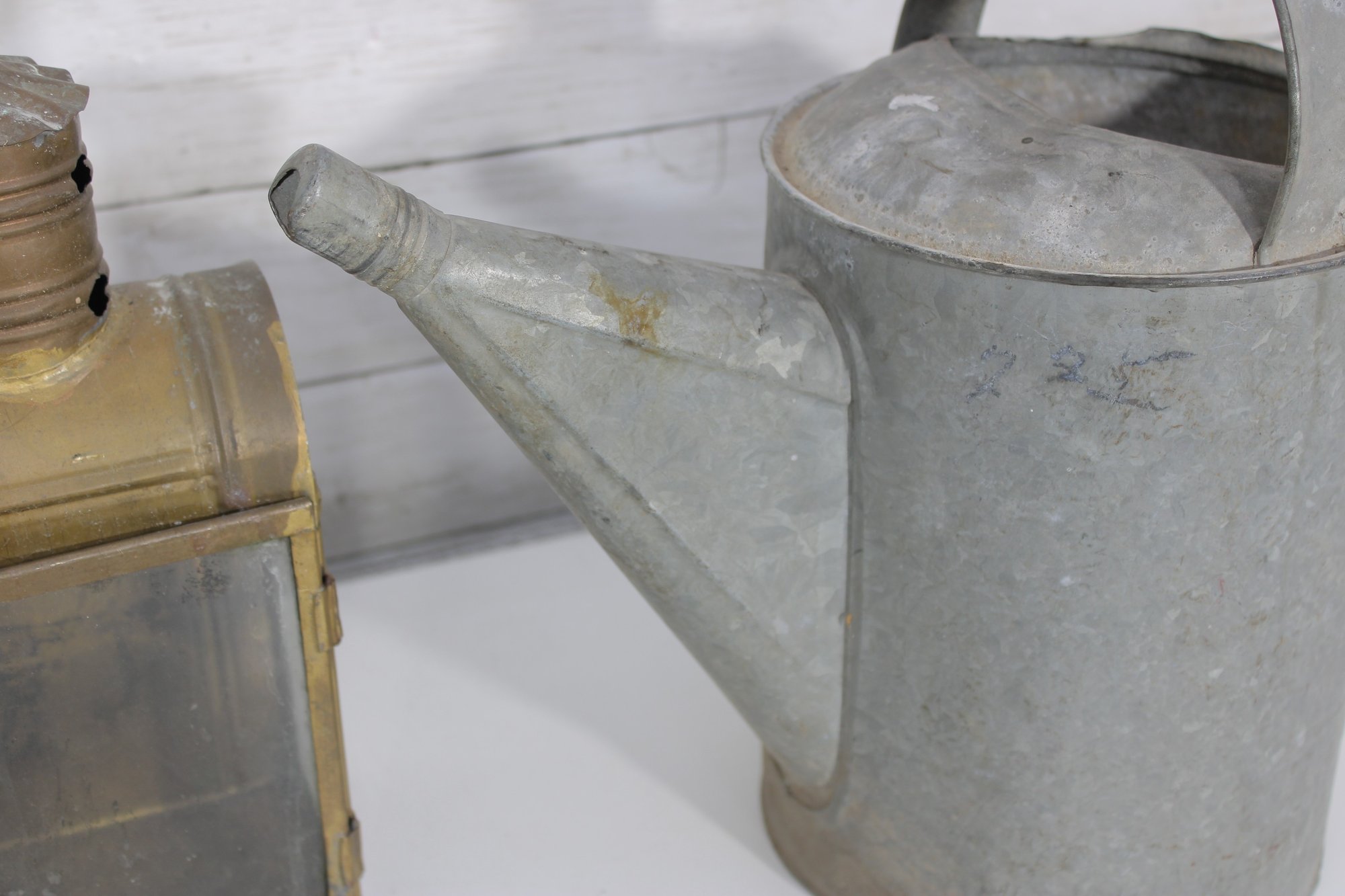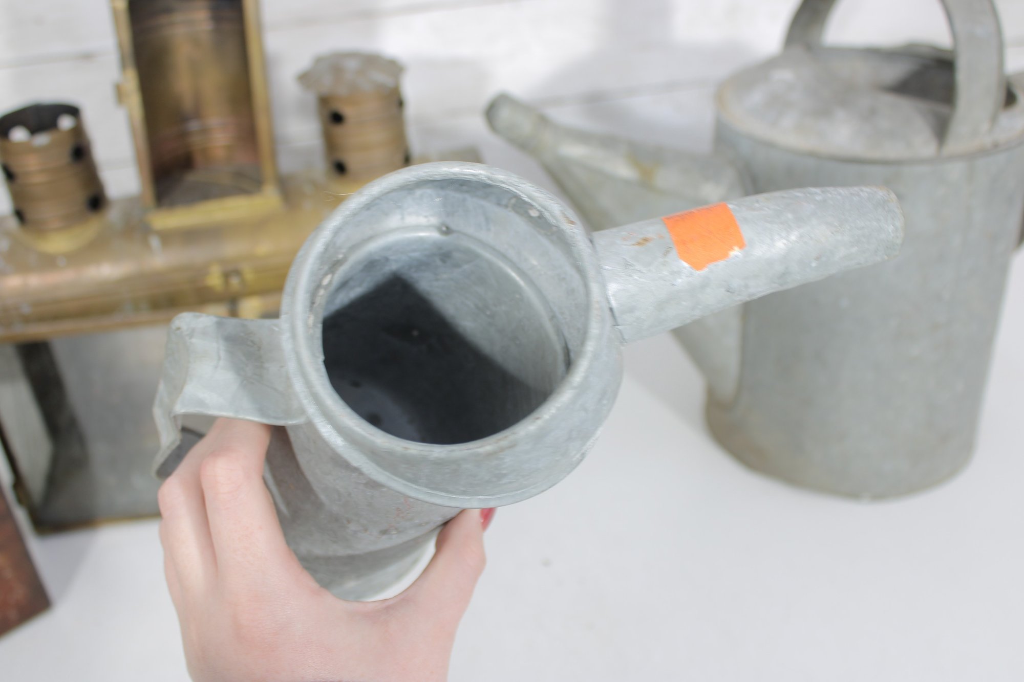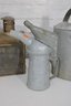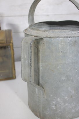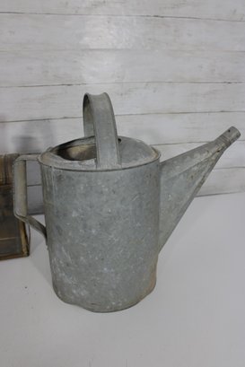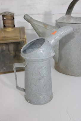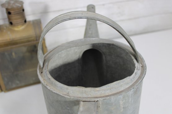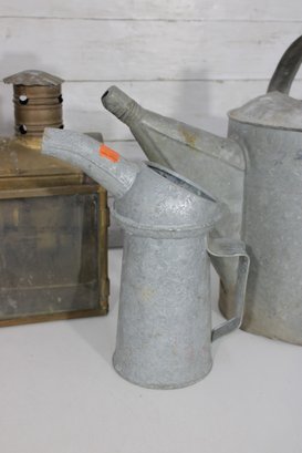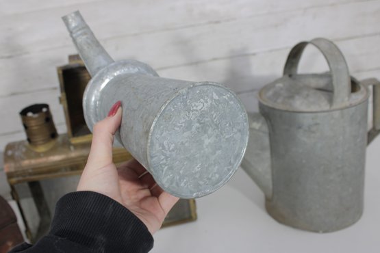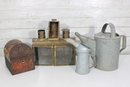 The galvanized watering cans offer classic utilitarian charm, while the lantern and tin box add industrial and antique-inspired appeal. Ideal for decorative use, prop styling, or collectors of vintage metalware.