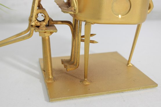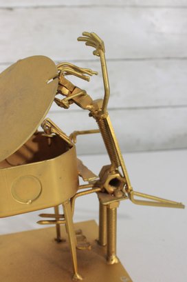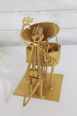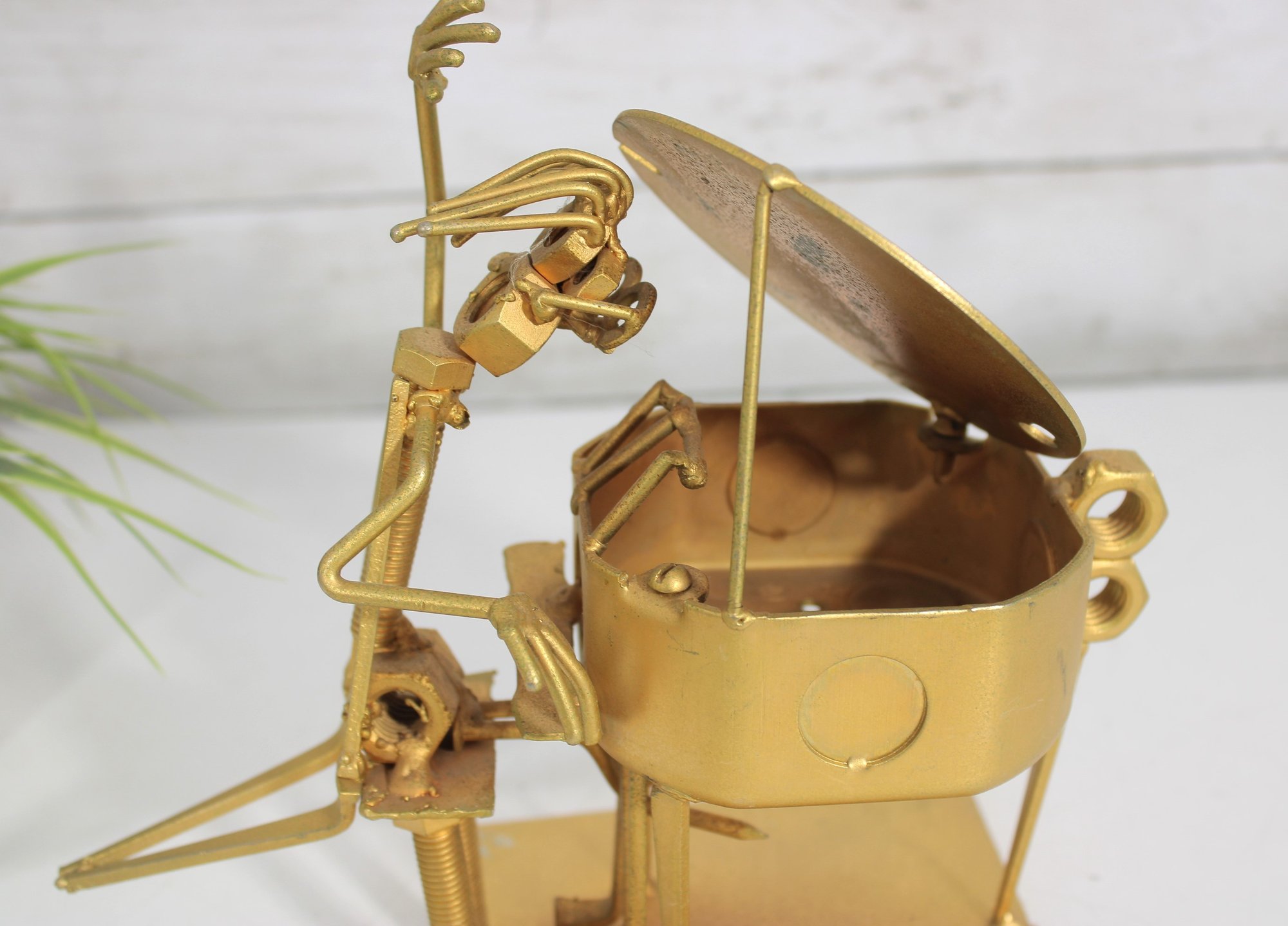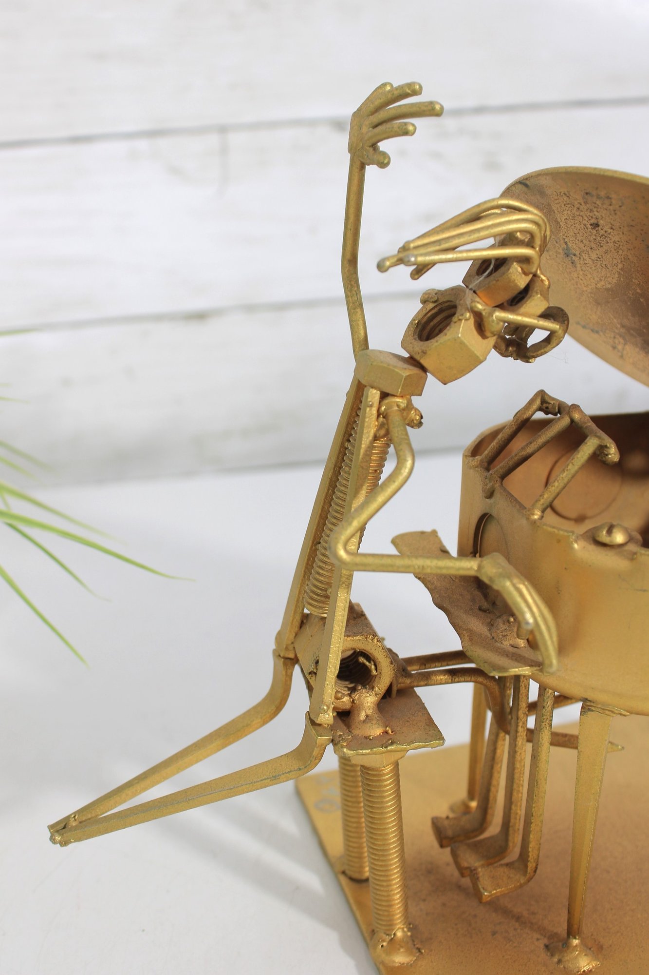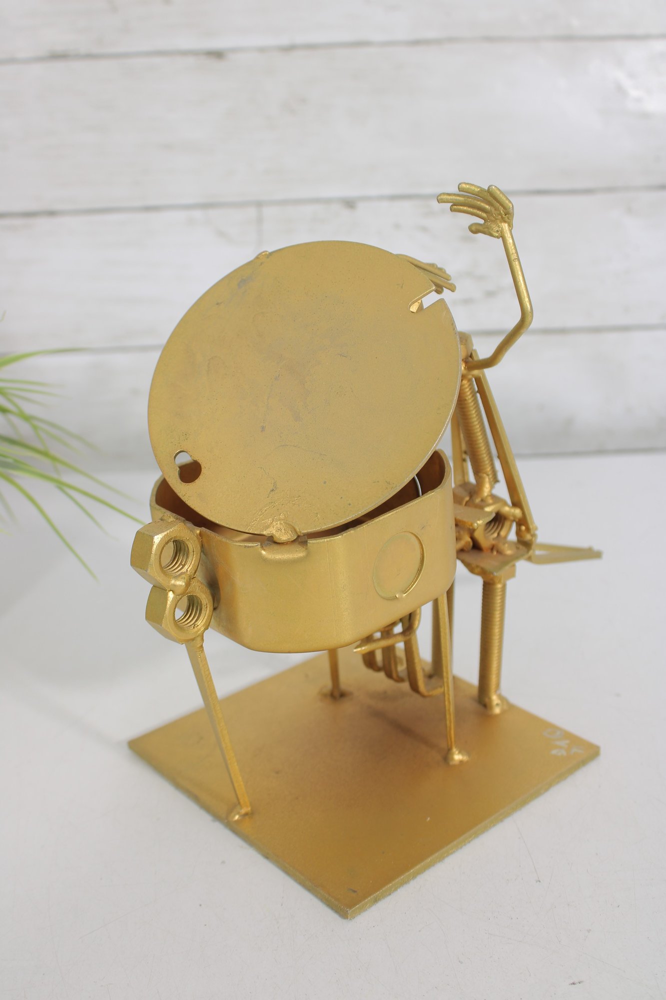 Finished in a gold-tone coating, the sculpture has a striking industrial-meets-artistic aesthetic. The expressive pose and intricate construction make it a standout decorative piece—perfect for music lovers, collectors of folk art, or fans of industrial décor.