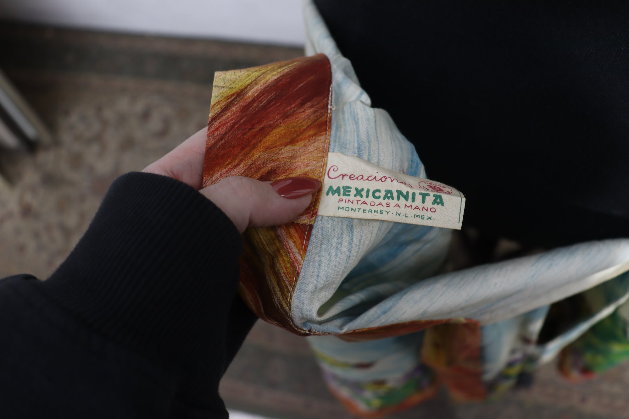 The detailed folk-art imagery and bold color palette make this a standout piece—perfect for collectors of vintage textiles, cultural folk art clothing, festival wear, or display. Labeled Hecho en México / Mexicanita (see tag).
