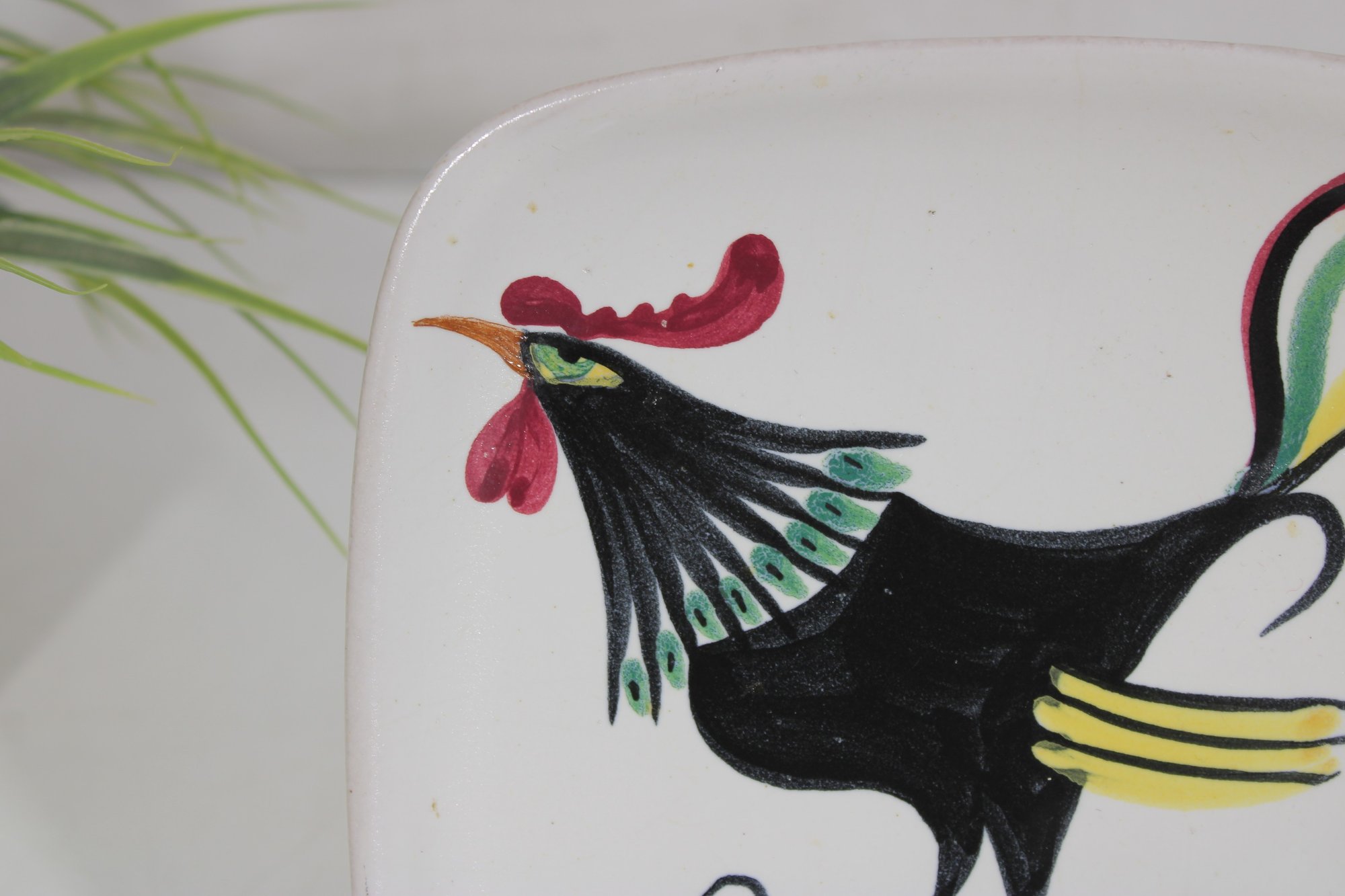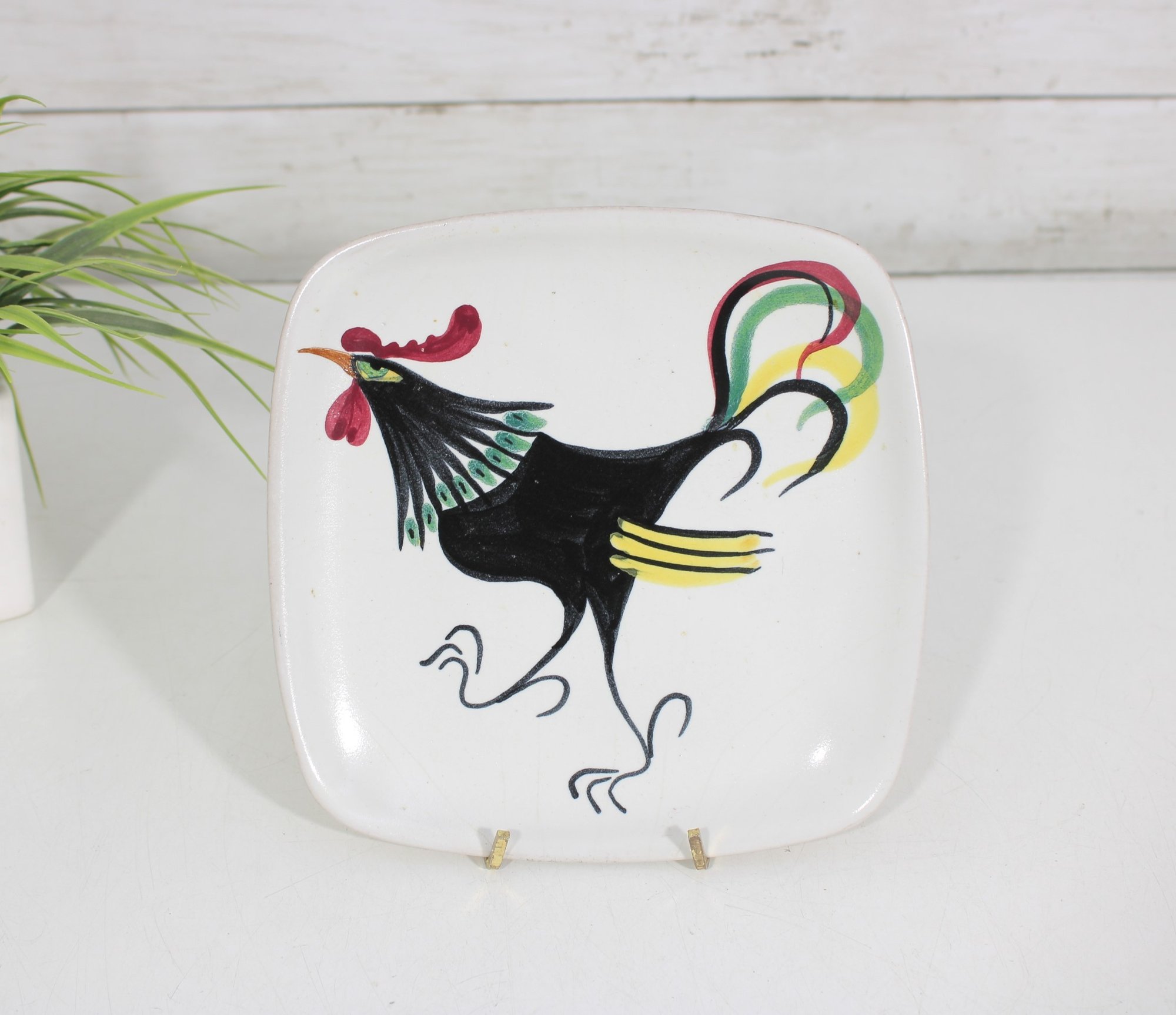 Vintage Mid Century Glidden Pottery Rooster Dish Plate -7"