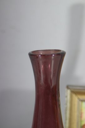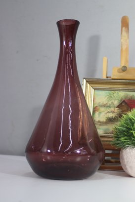 vintage mid-century modern amethyst glass vase features a sleek teardrop silhouette, making it a sophisticated accent piece for any décor style. The rich deep purple hue adds a touch of elegance, perfect for collectors and vintage glass enthusiasts.