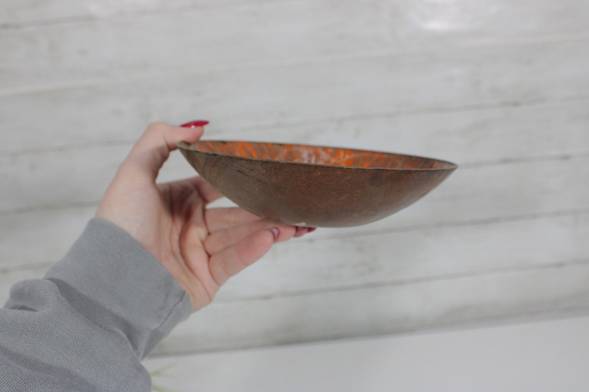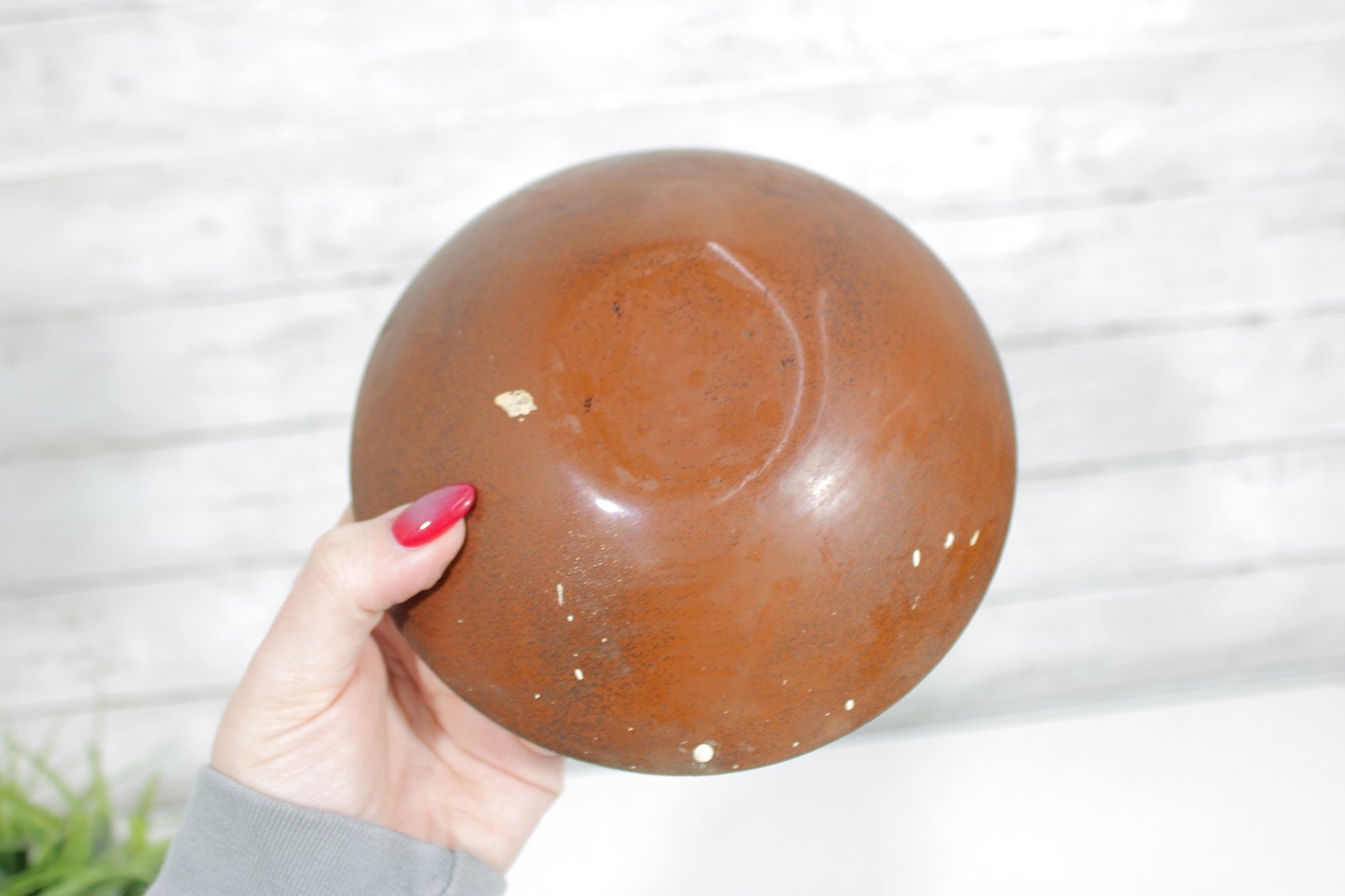 This 6.5” dish is a wonderful decorative accent—perfect as a catchall, trinket dish, or displayed on a shelf or stand. Its unique design makes it a standout piece for collectors of mid-century enamelware.