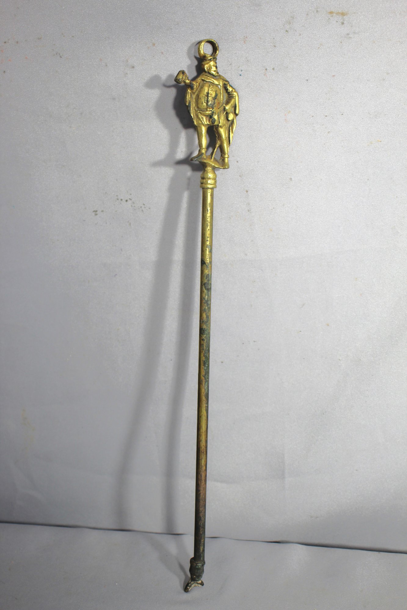 dating back to the golden era of the 1950s-1960s. This exquisite piece features a detailed cast brass handle, showcasing the figure of a person in period attire, complete with a loop for easy display or storage.