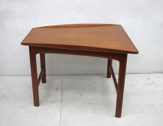 Add a touch of mid-century charm to your space with this beautiful vintage teak side table featuring a unique asymmetrical geometric shape. The sleek lines, warm teak finish, and expertly crafted legs make this a perfect piece for Danish modern, retro, or Scandinavian-inspired interiors.